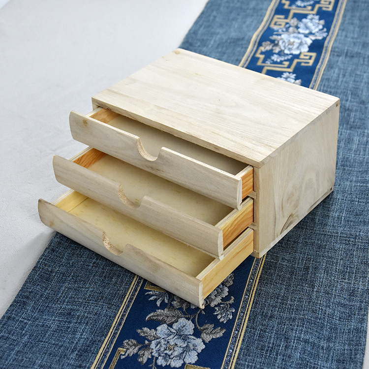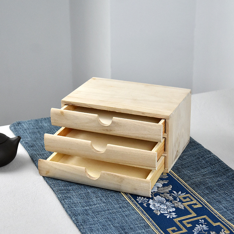 中式三层带抽茶叶盒 木质抽拉式普洱茶饼茶叶盒子 木制茶叶收纳盒