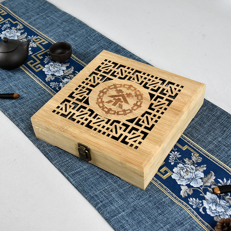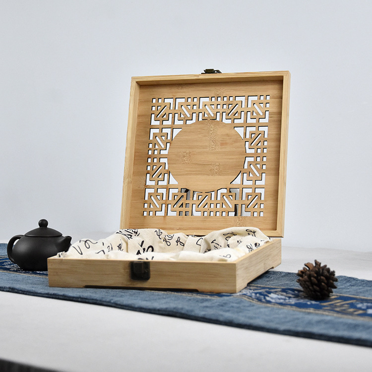 竹制镂空雕花普洱茶叶茶饼盒 木质礼品茶叶包装盒 木制通用茶叶盒