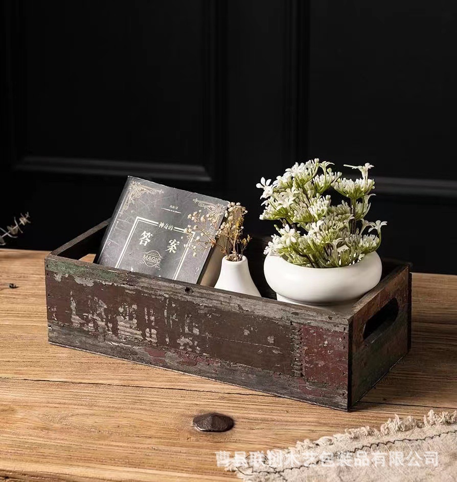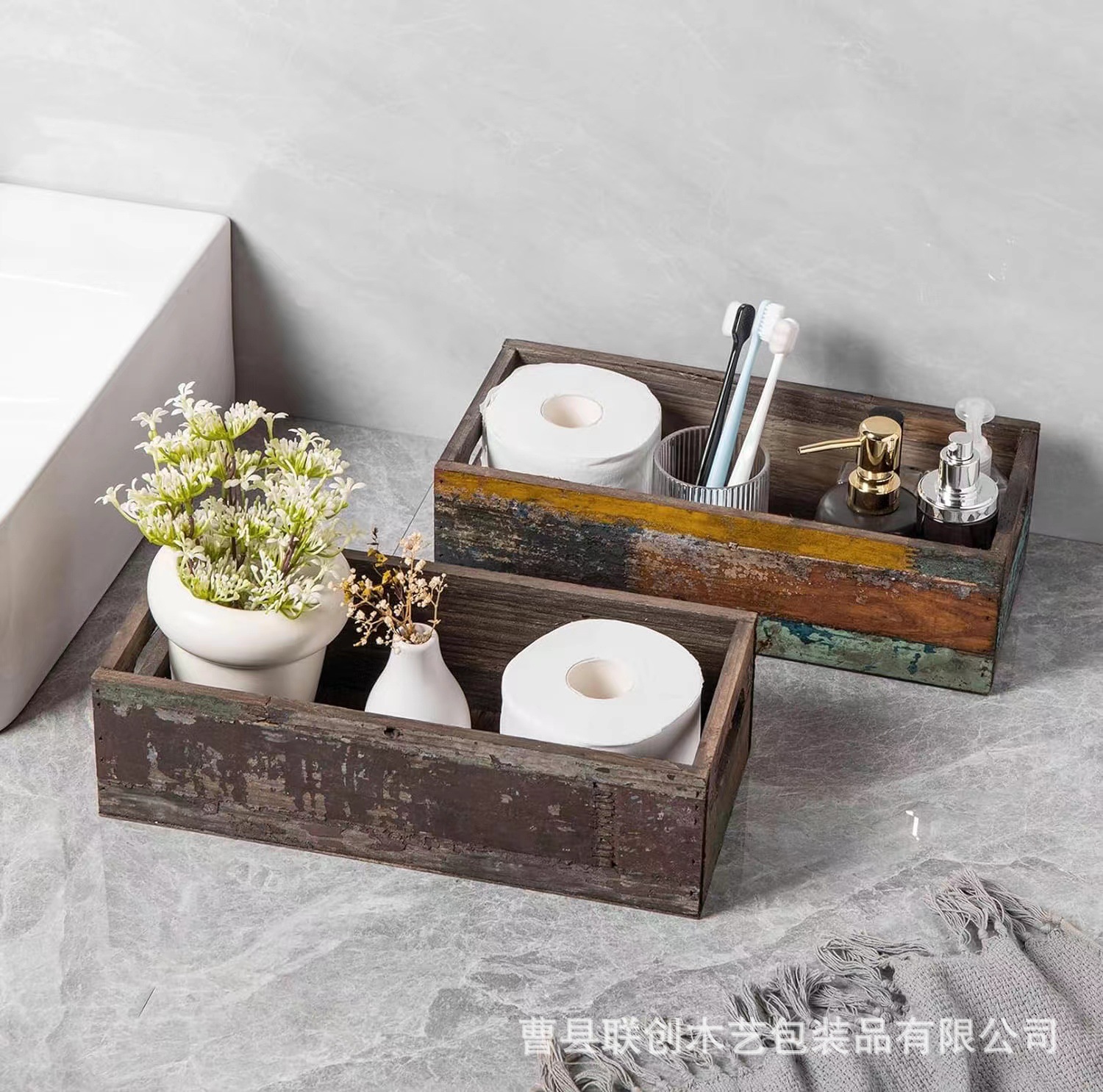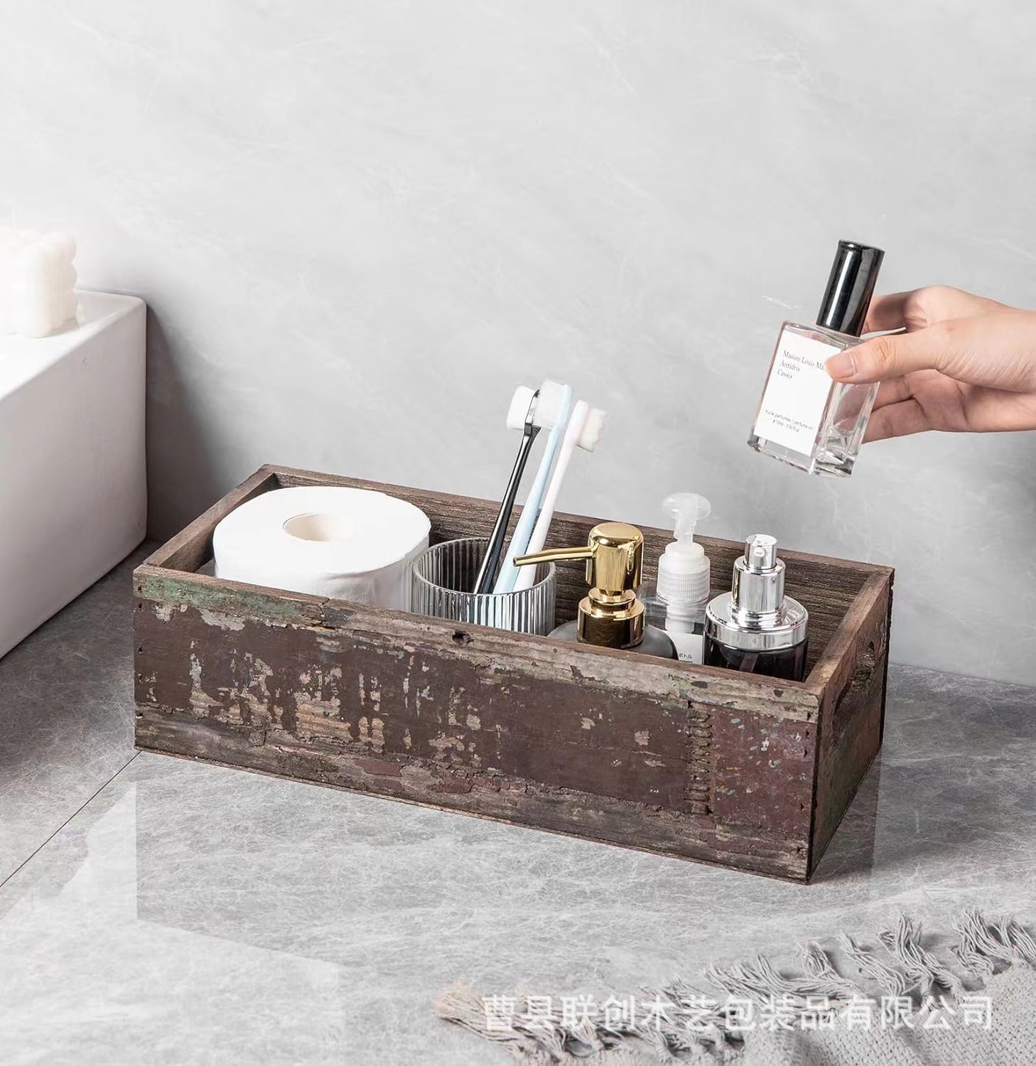 桌面收纳盒乡村复古风浴室洗漱用品整理盒杂物分类木盒实木收纳盒