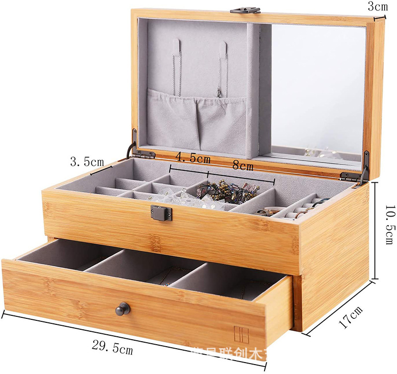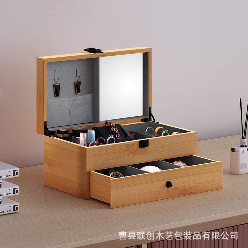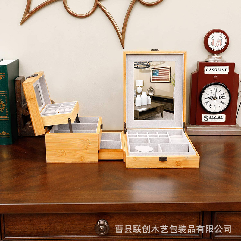 北欧竹制女士首饰盒多层桌面首饰珠宝项链收纳盒手表饰品存储展示