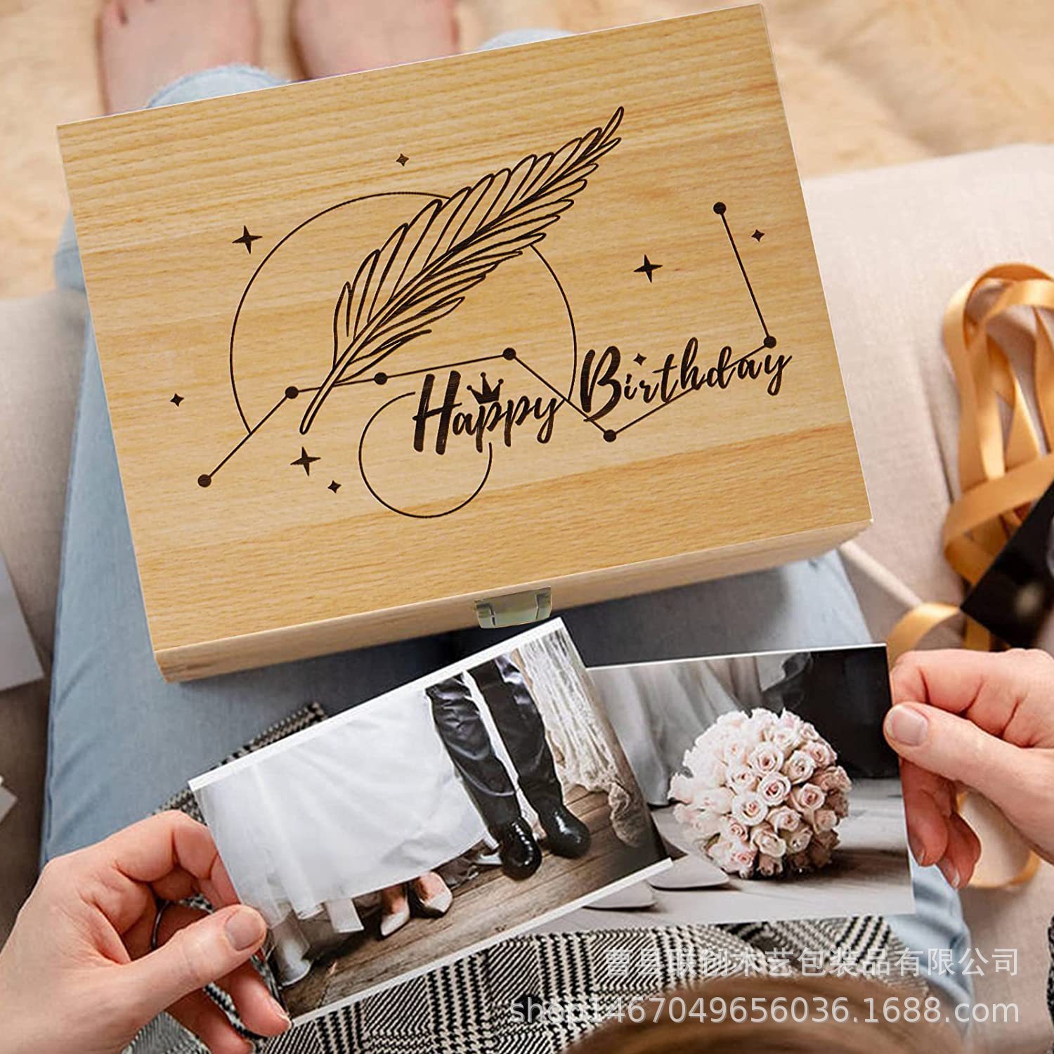 方形木盒收纳盒客厅简约杂物储物盒卧室化妆品收纳盒照片文具盒