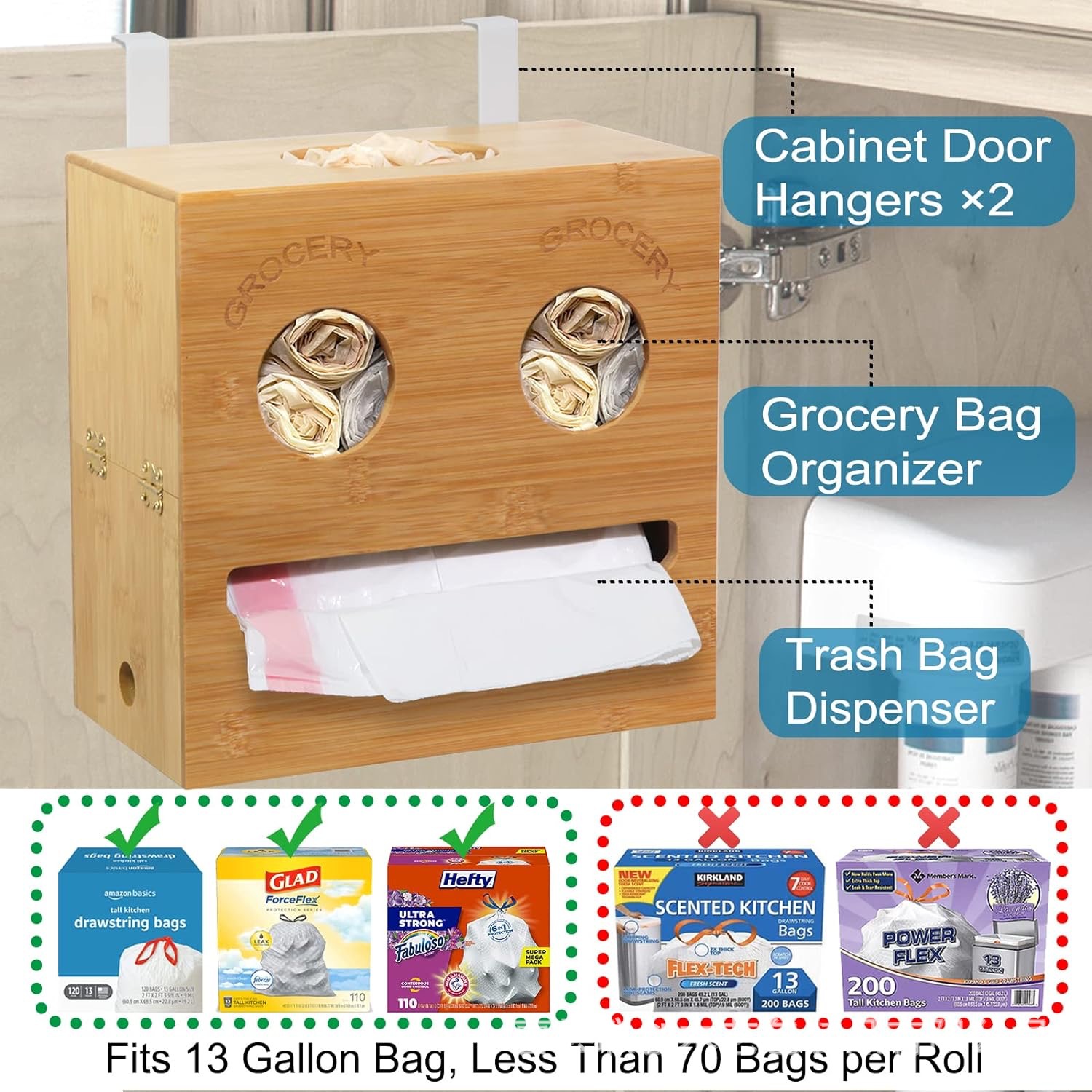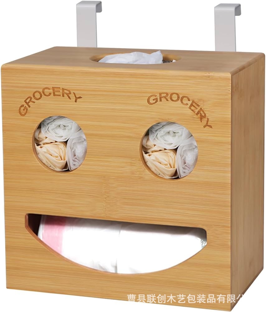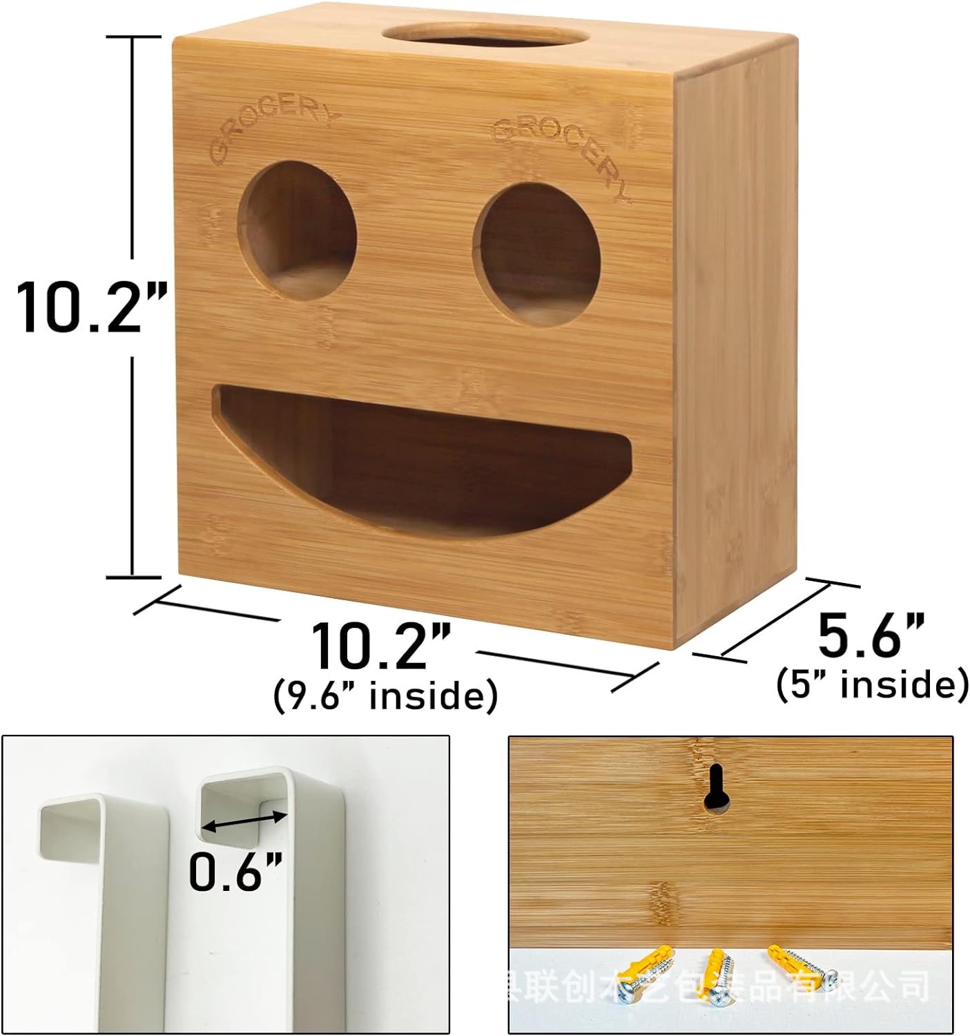 木质垃圾袋收纳盒厨房可壁挂塑料袋杂物整理木盒笑脸款实木收纳盒