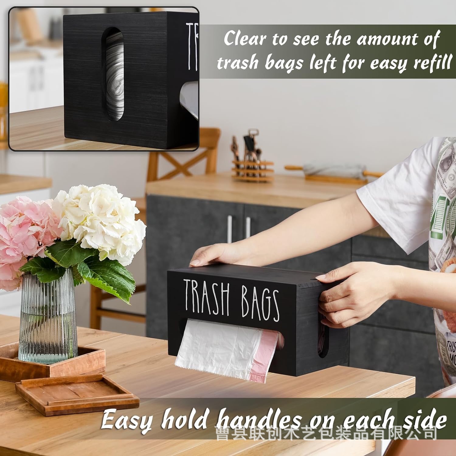 桌面收纳盒垃圾袋整理木盒厨房多用保鲜膜盒塑料袋抽拉实木纸巾盒