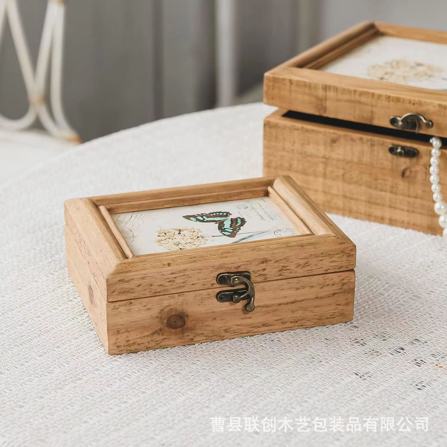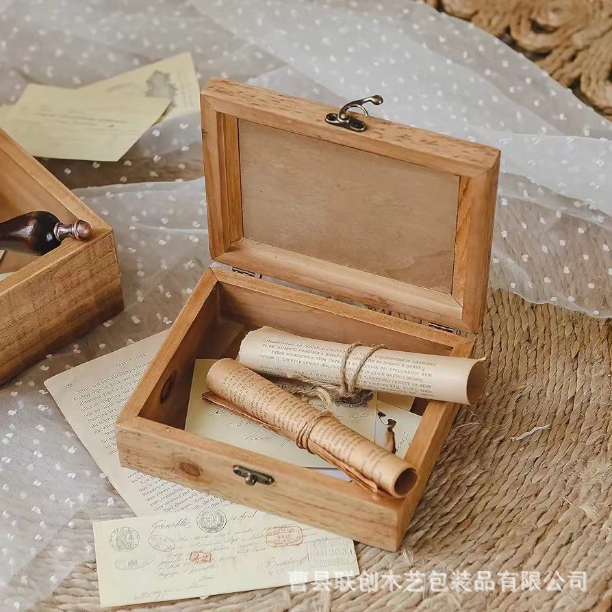 原木色简约收纳盒家居桌面收纳男女生创意办公用品名片木质包装盒