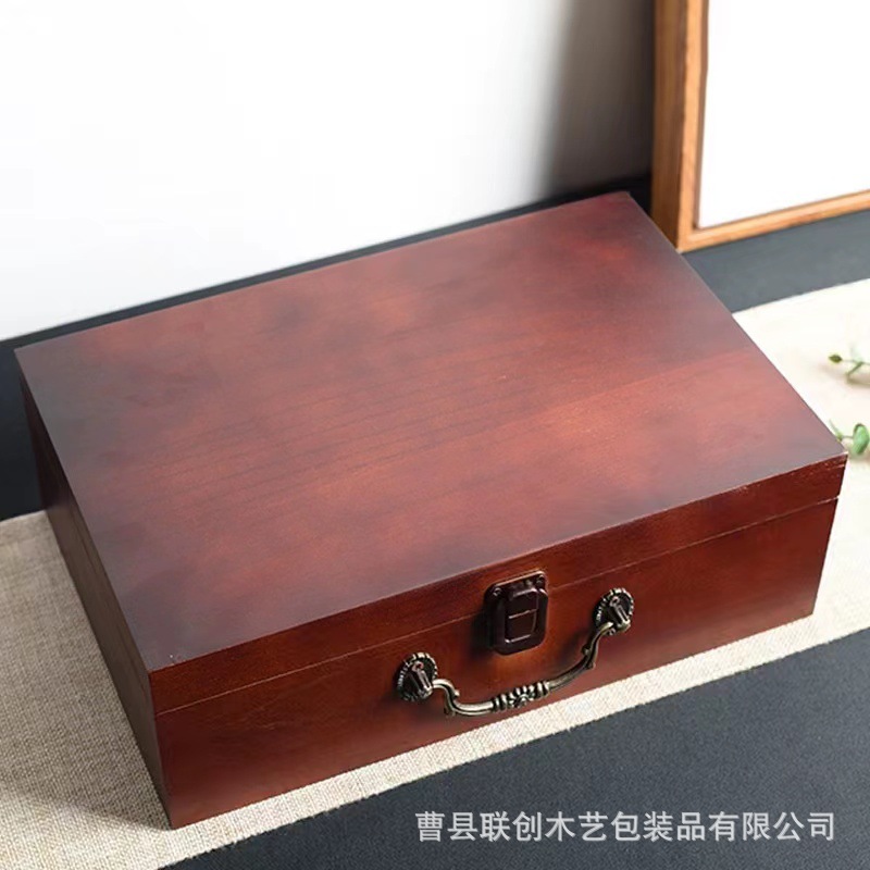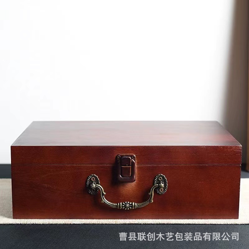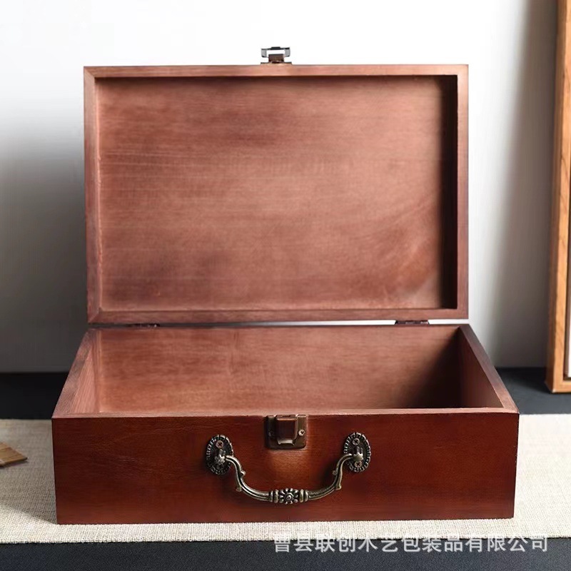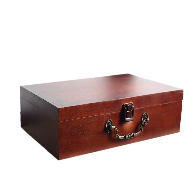 木质纪念品收藏盒礼品包装盒带锁桌面收纳盒方形带提手实木存储盒