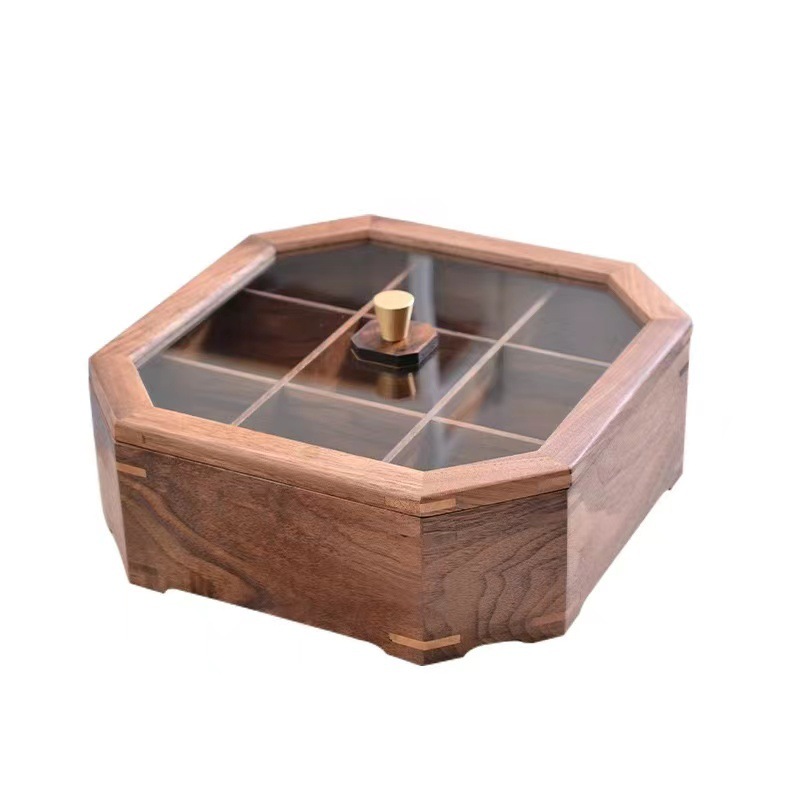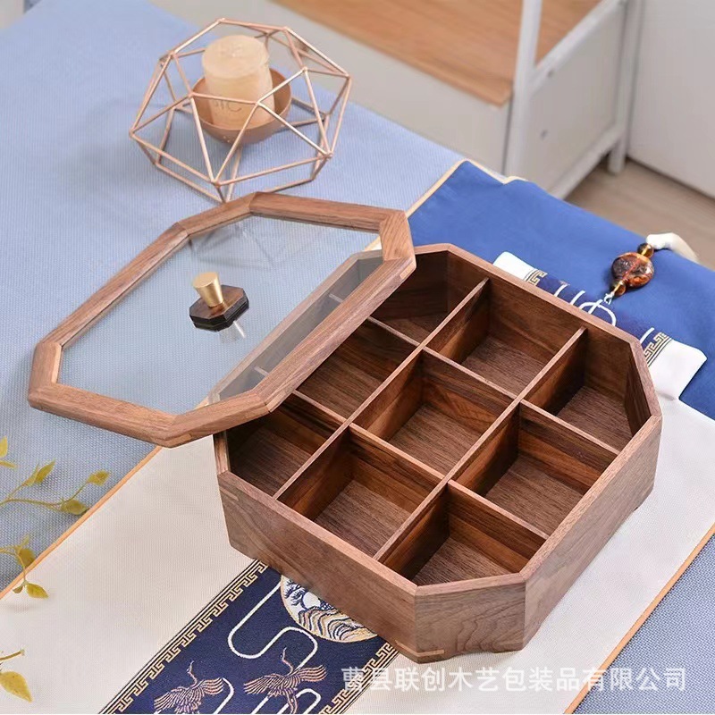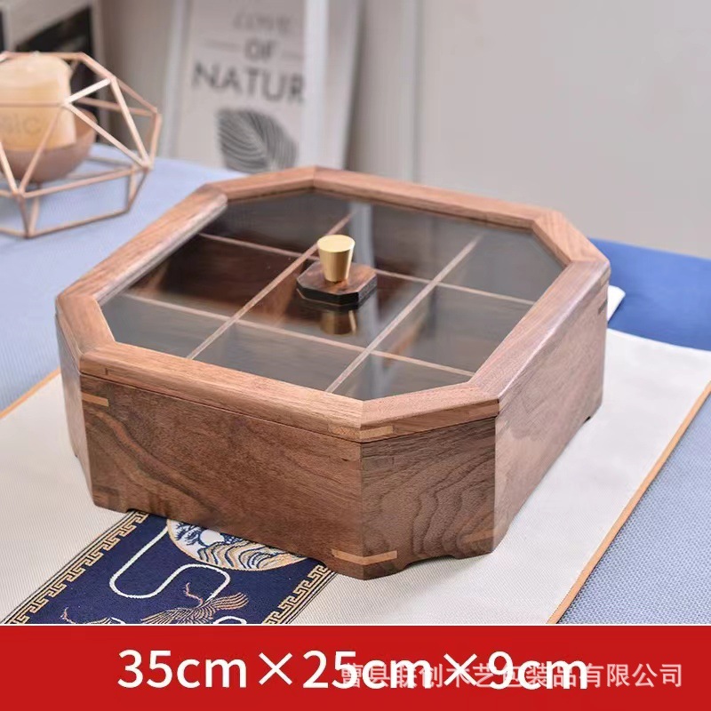 实木干果盒客厅果盘九宫格中式复古坚果盒零食盒木质糖果收纳盒