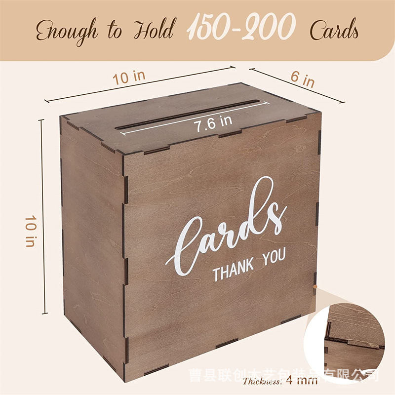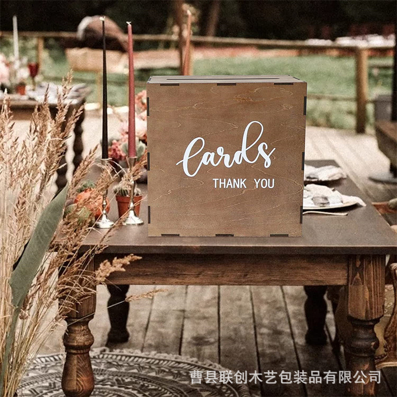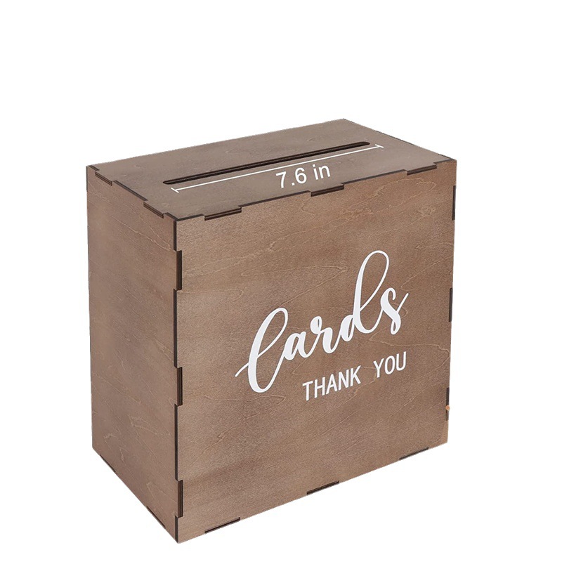 复古木质婚礼贺卡收纳盒家用卡片照片收藏盒零花钱储蓄盒带盖木盒