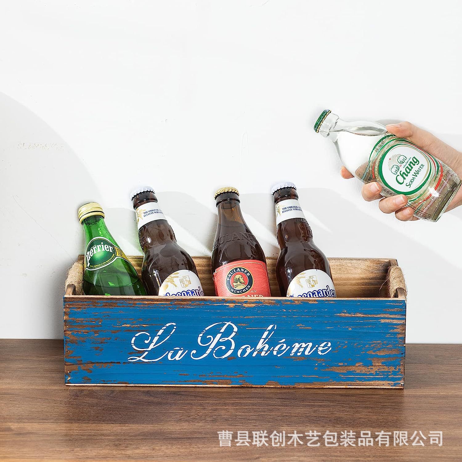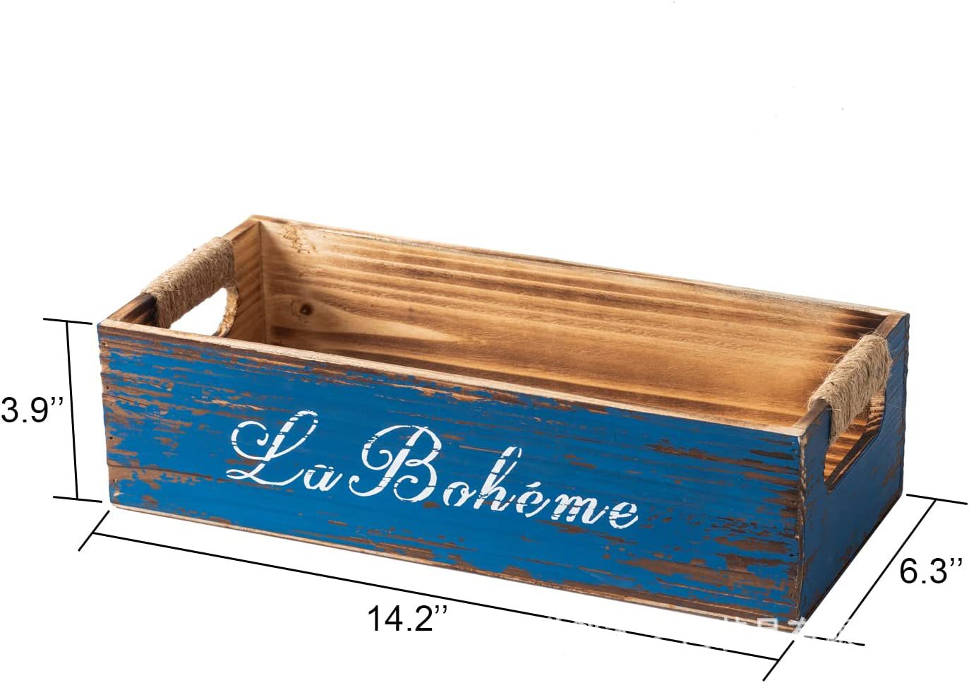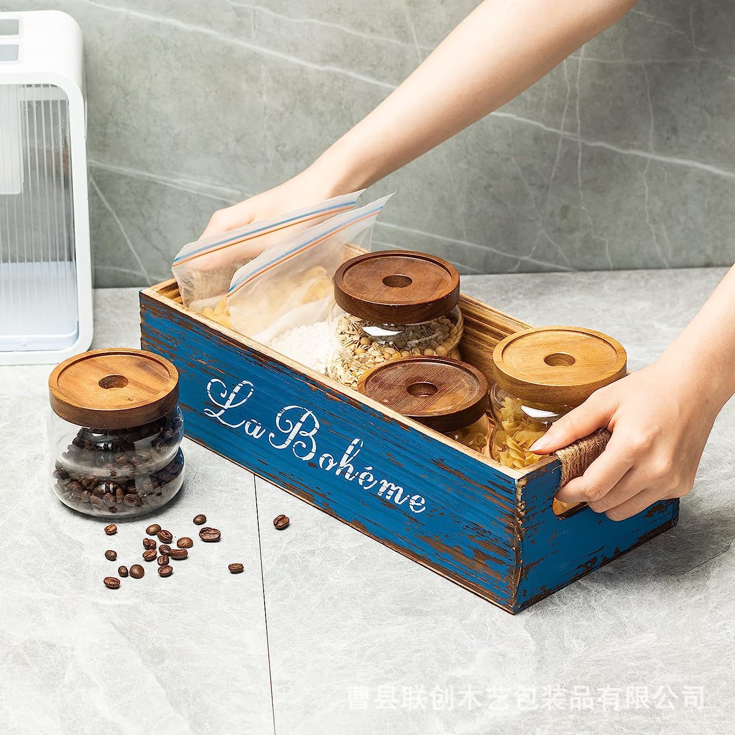 复古蓝多用木质收纳盒浴室洗漱用品卷纸整理盒杂物分类实木储物盒