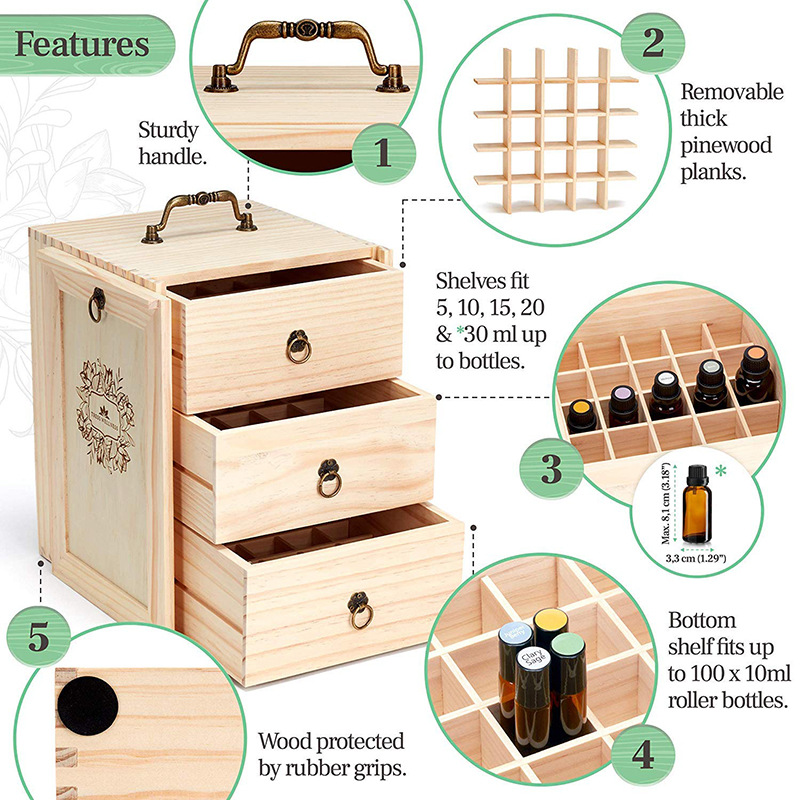 松木多格收纳盒抽拉式精油收纳盒三层实木精油盒精油展示收纳盒