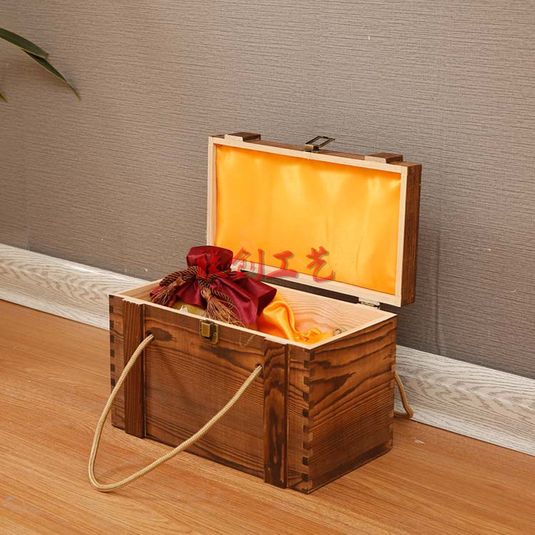 木质原浆白酒包装礼品盒 2瓶实包装木盒通用酒盒 手提木盒