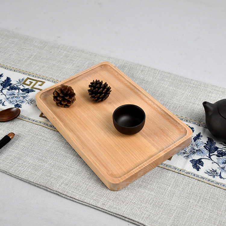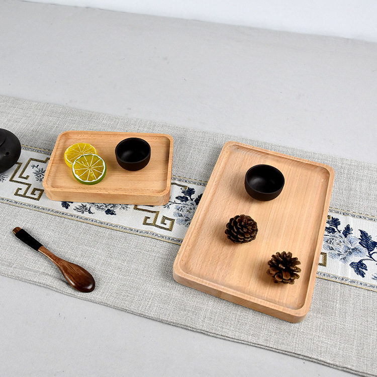 日式榉木托盘长方形 家用茶水杯茶盘木质 客厅水果木制早餐托盘