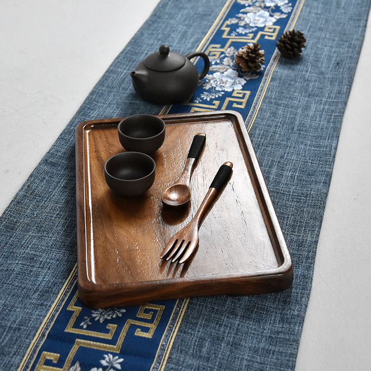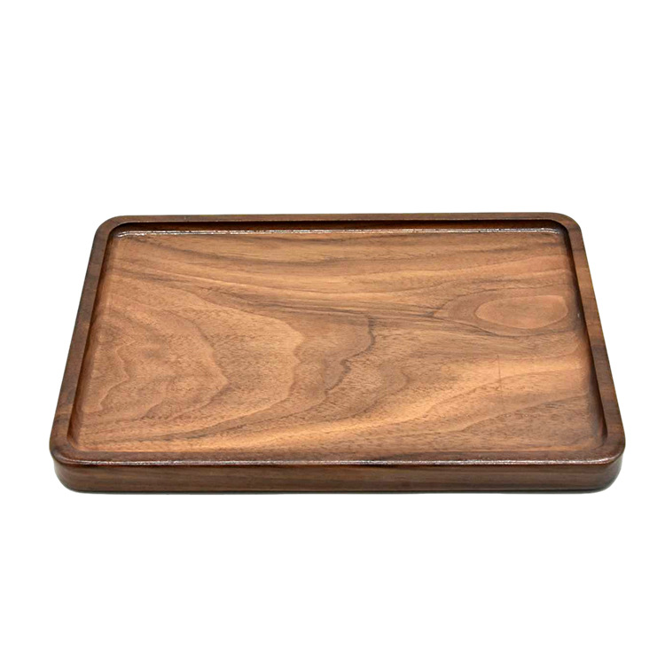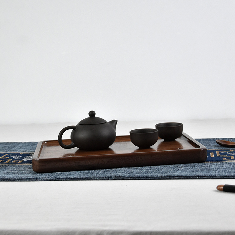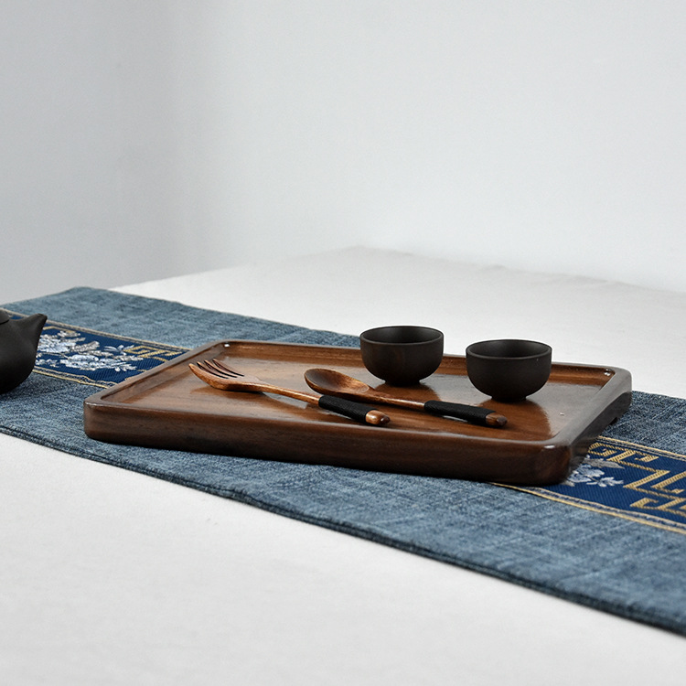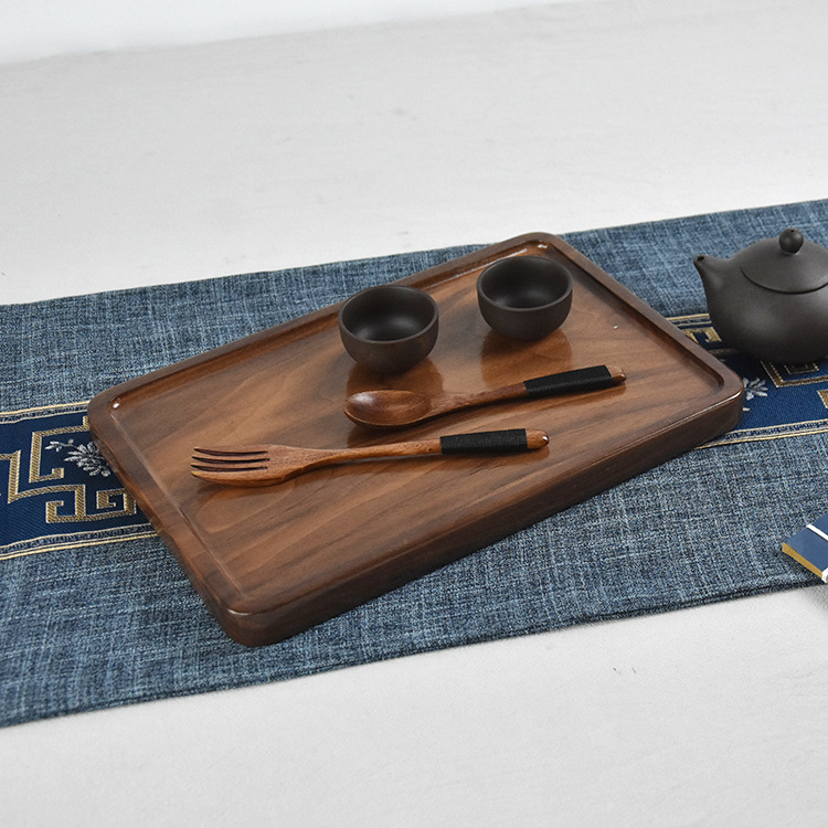 日式黑胡桃木托盘长方形 家用茶水杯茶盘木质 客厅水果木制餐盘