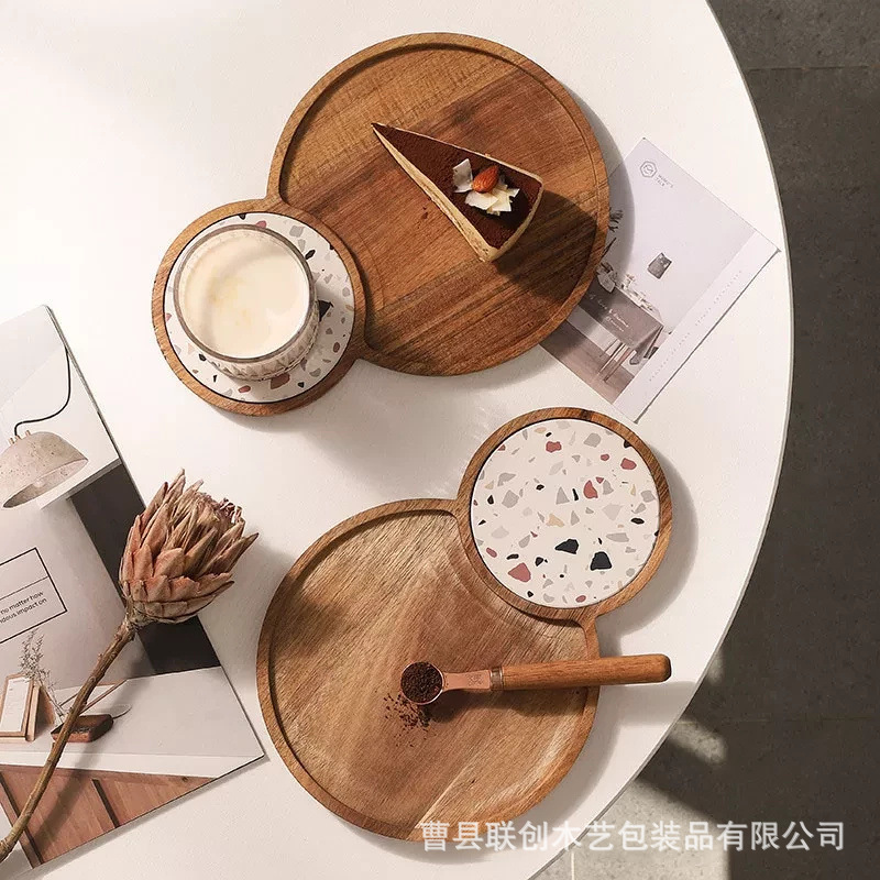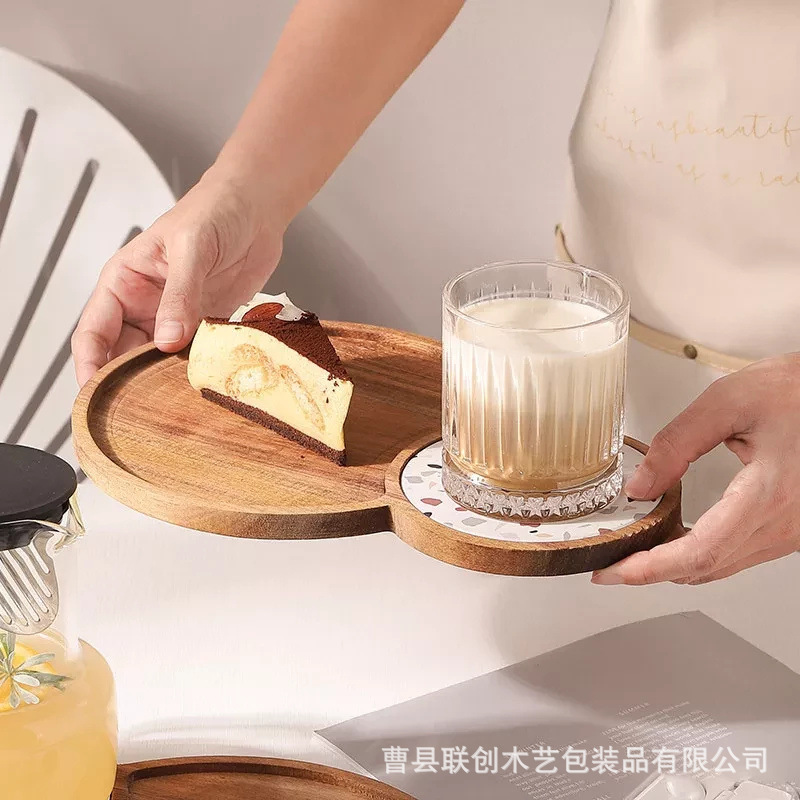 木质葫芦形托盘创意咖啡店茶盘家用蛋糕实木盘子水杯盘子水果盘