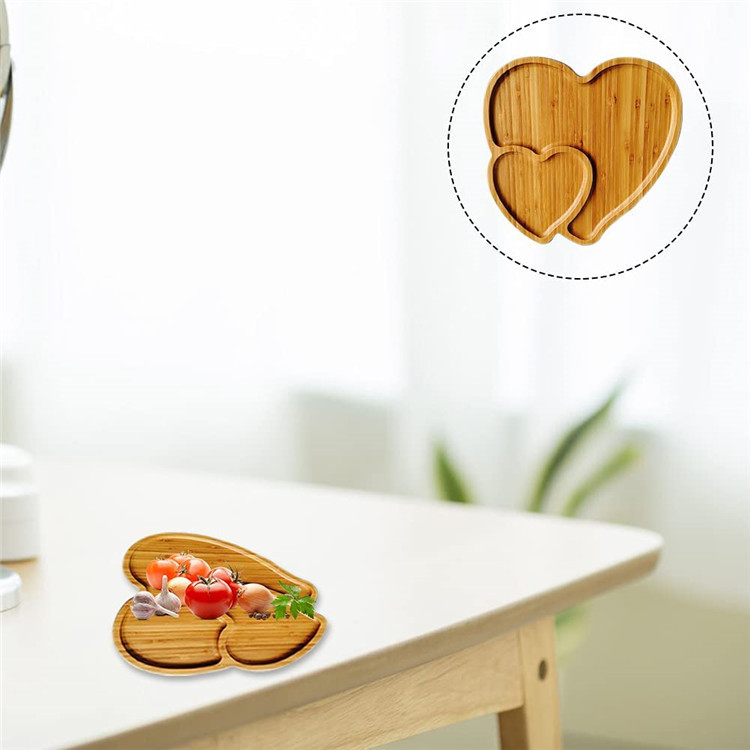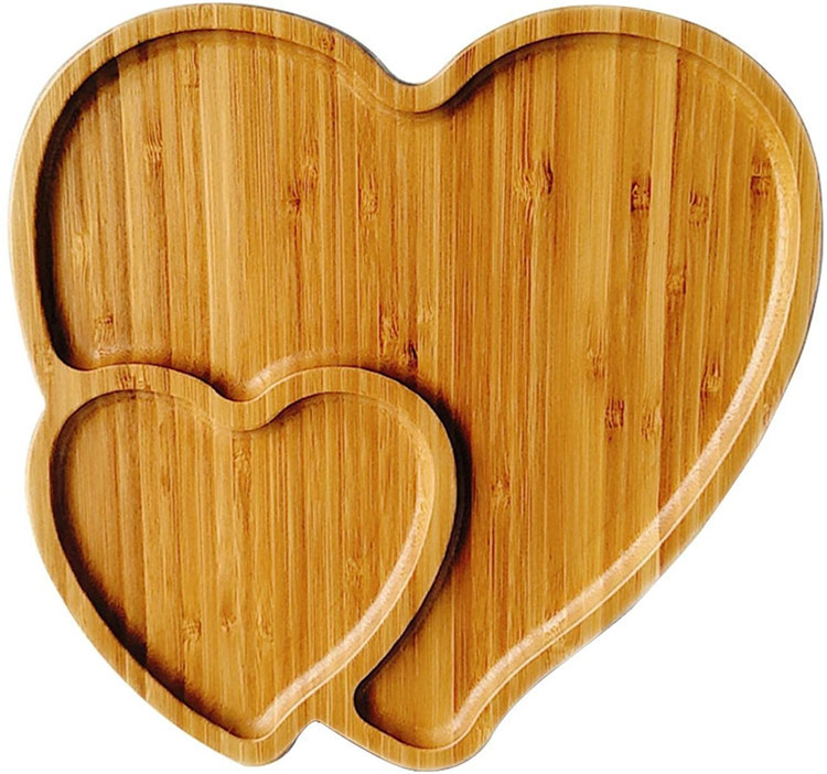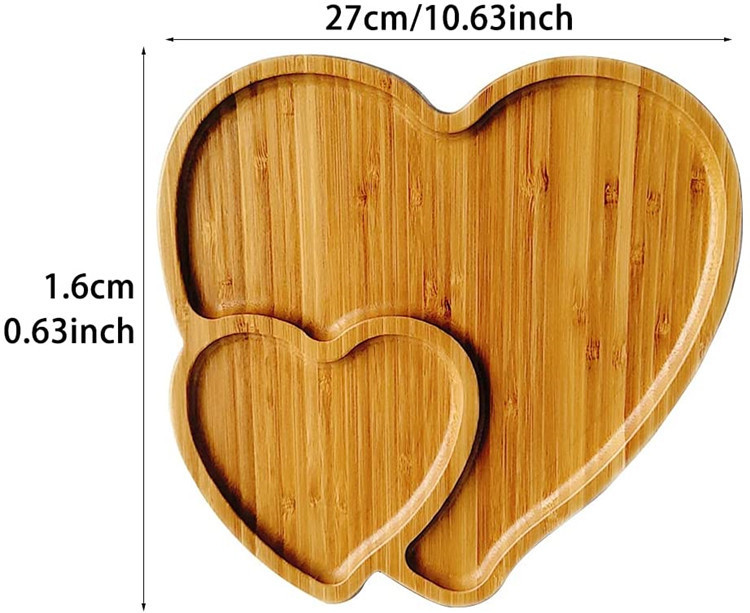 双爱心创意竹木餐盘下午茶点心面包水果盘收纳装饰托盘实木托盘