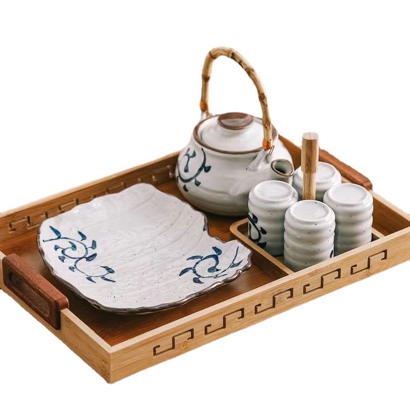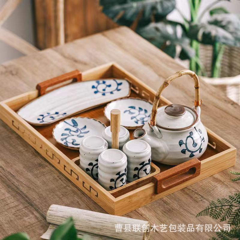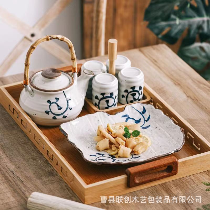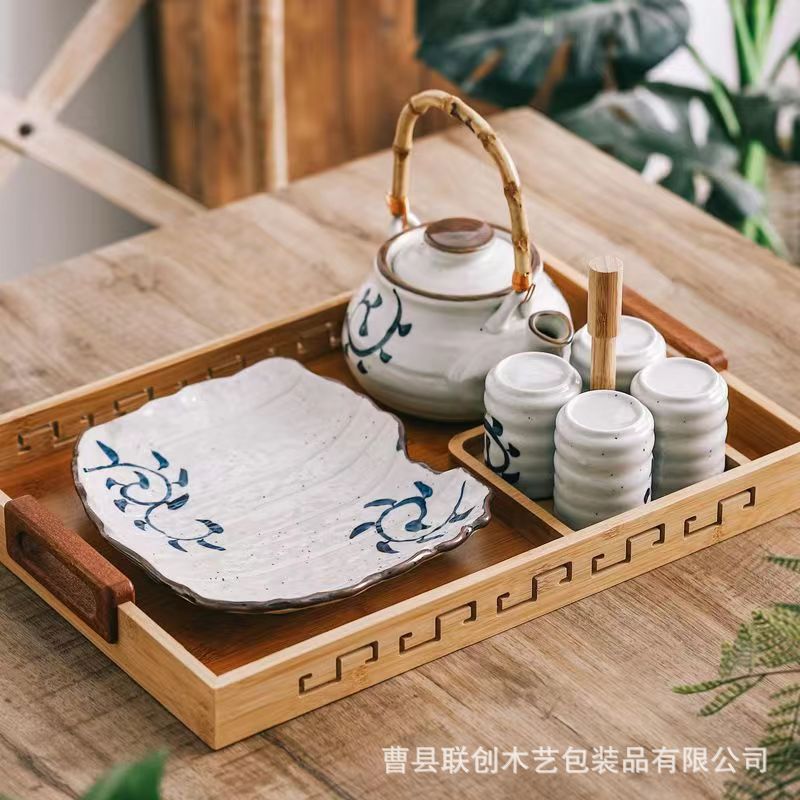 办公室带把手咖啡杯茶杯收纳盘客厅桌面餐具茶具水杯收纳木质托盘