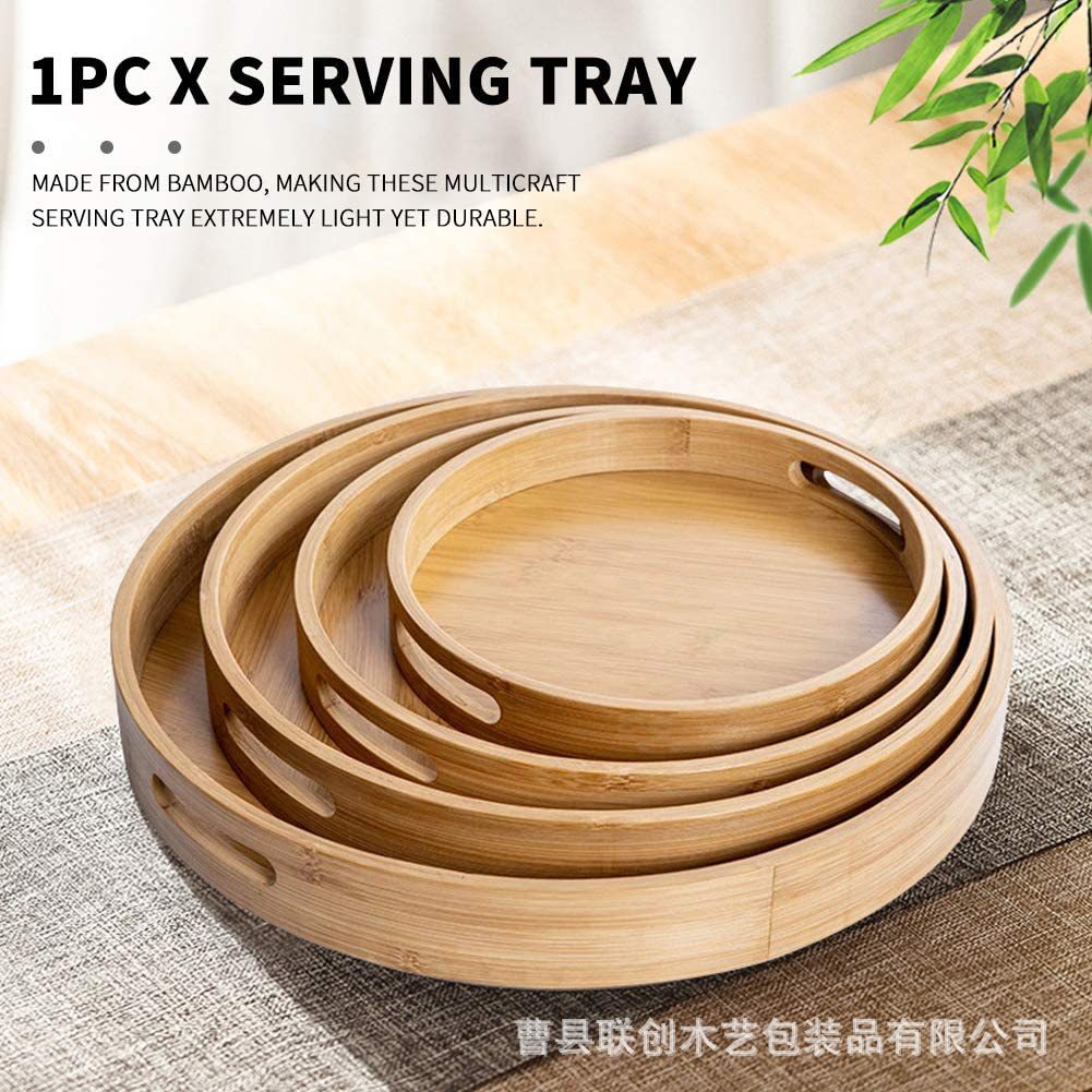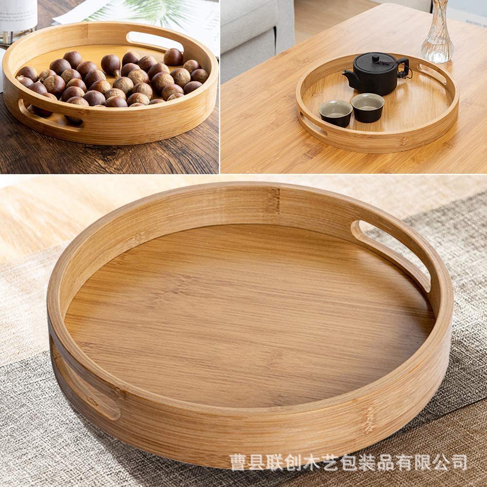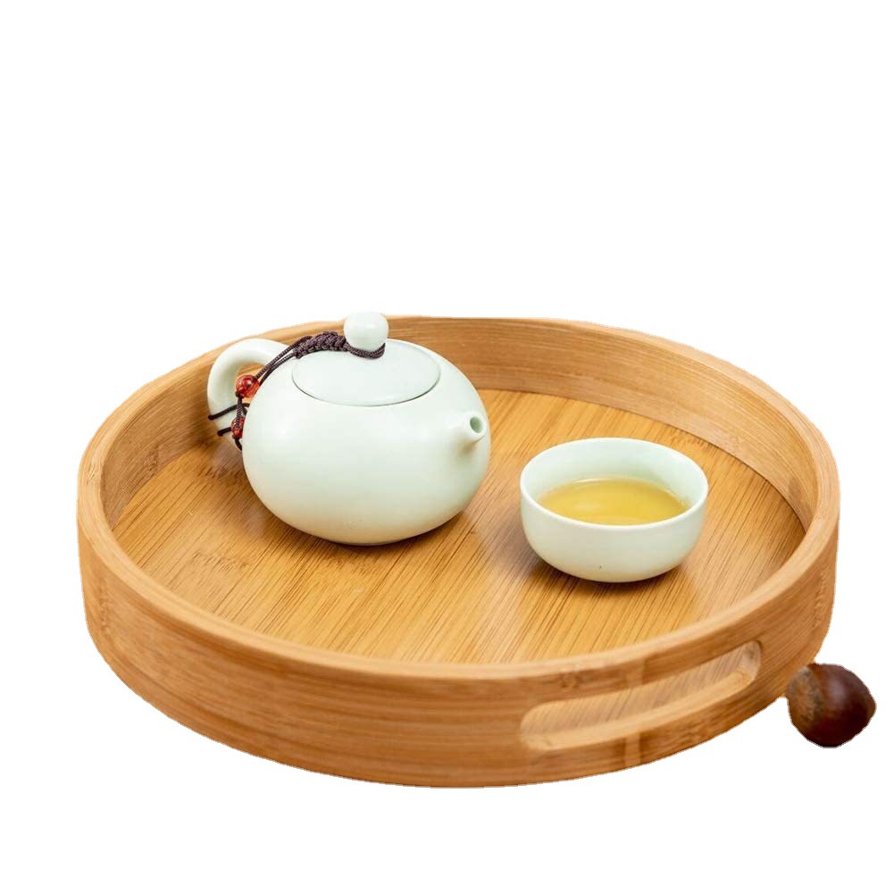 竹木制托盘日式面包盘客厅桌面带把手放茶杯盘圆形泡茶水果托盘