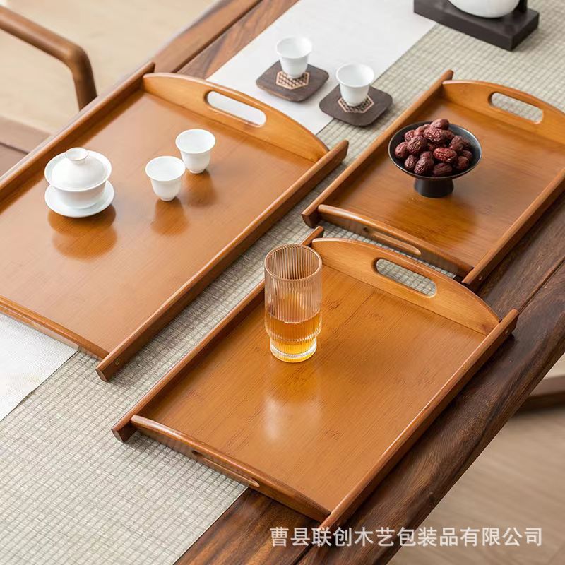 实木收纳托盘方形竹木茶水盘餐厅服务托盘日式面包托盘烧烤上菜盘