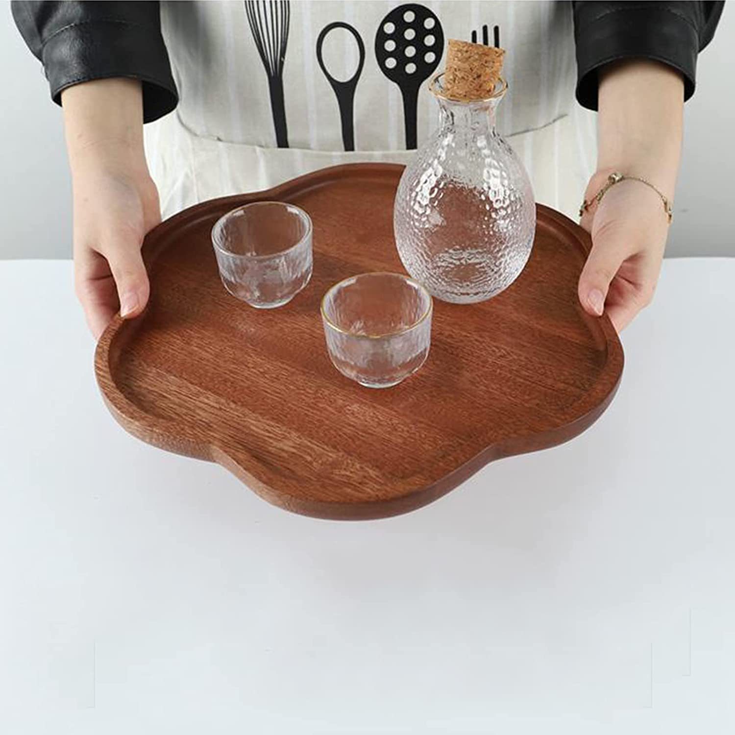 新中式家用创意不规则实木托盘咖啡盘茶盘水果零食收纳盘