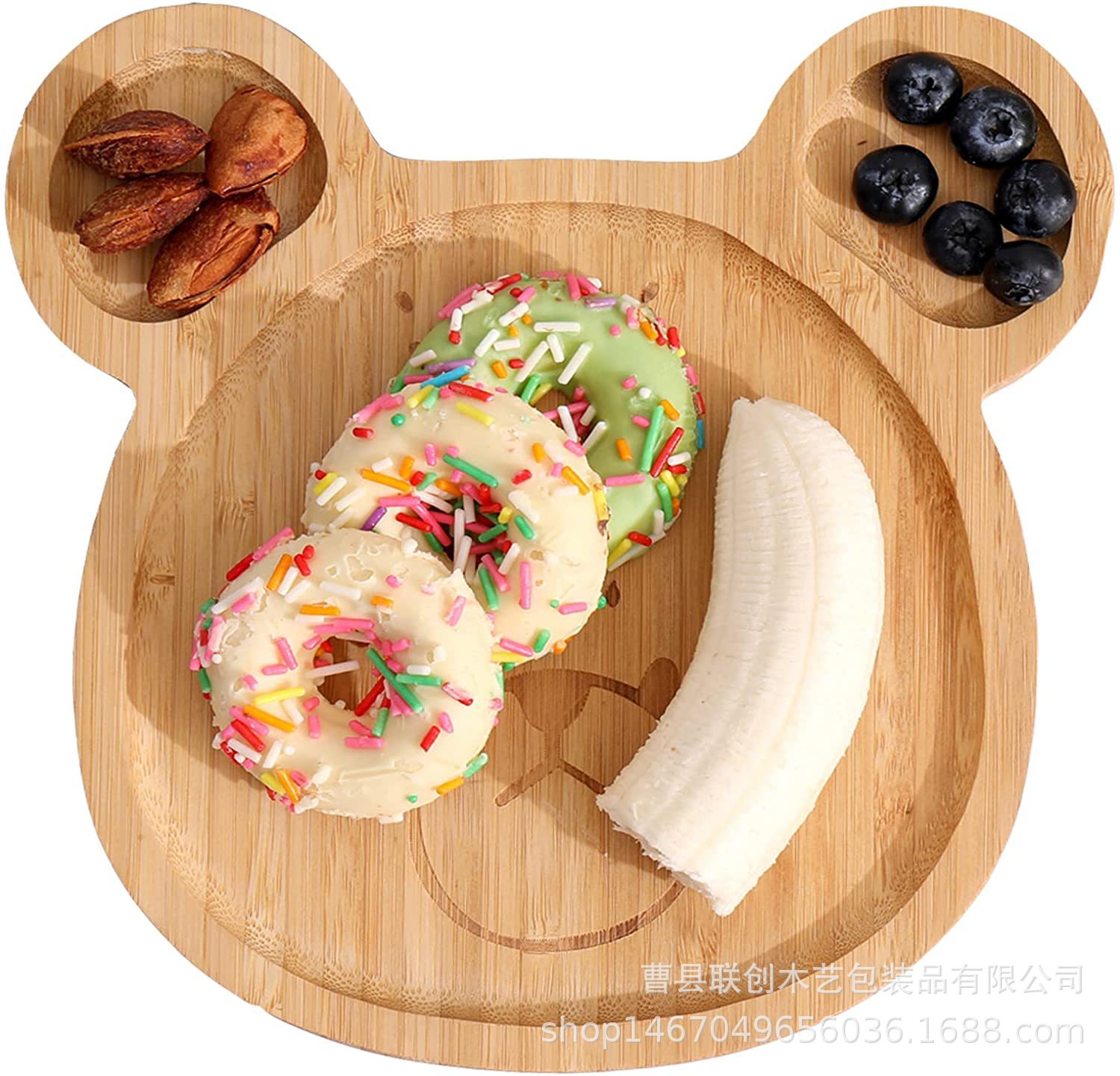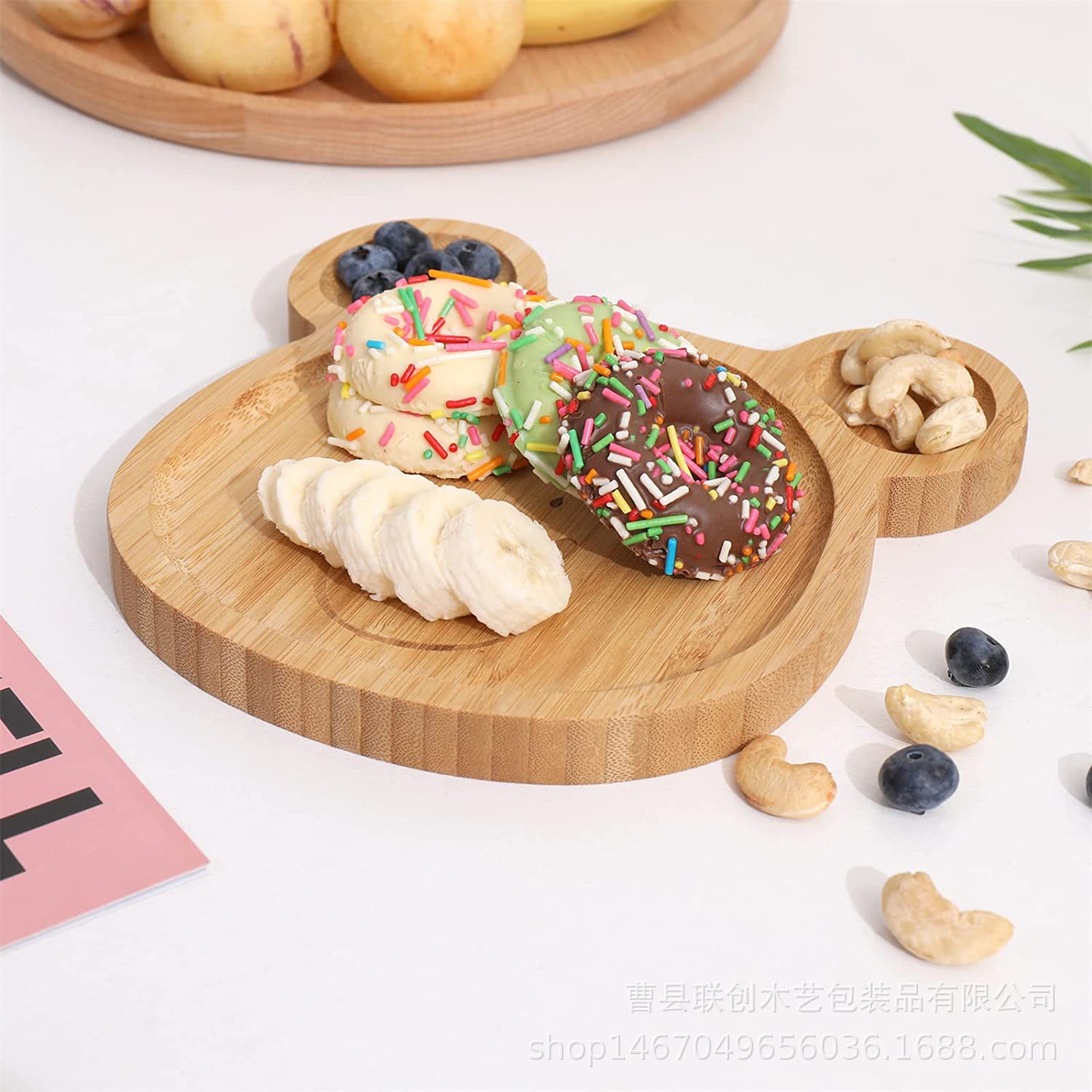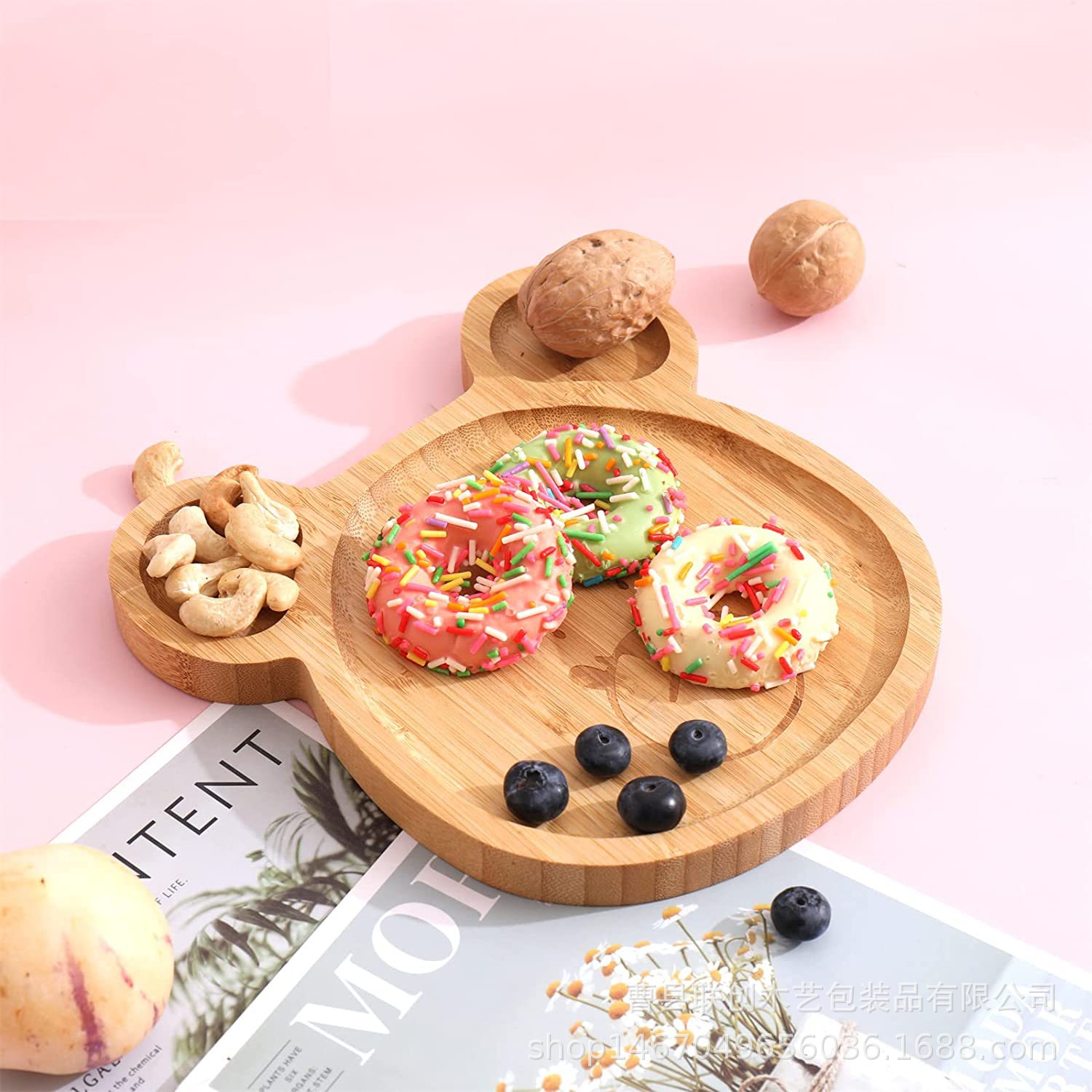 实木桌面早餐盘可爱卡通设计整理餐盘儿童分餐盘水果收纳托盘