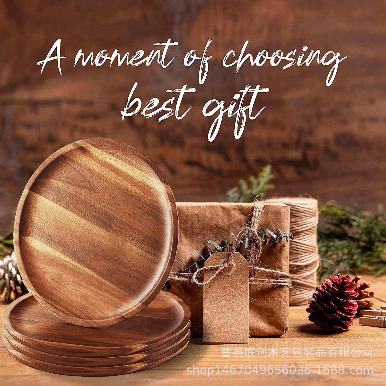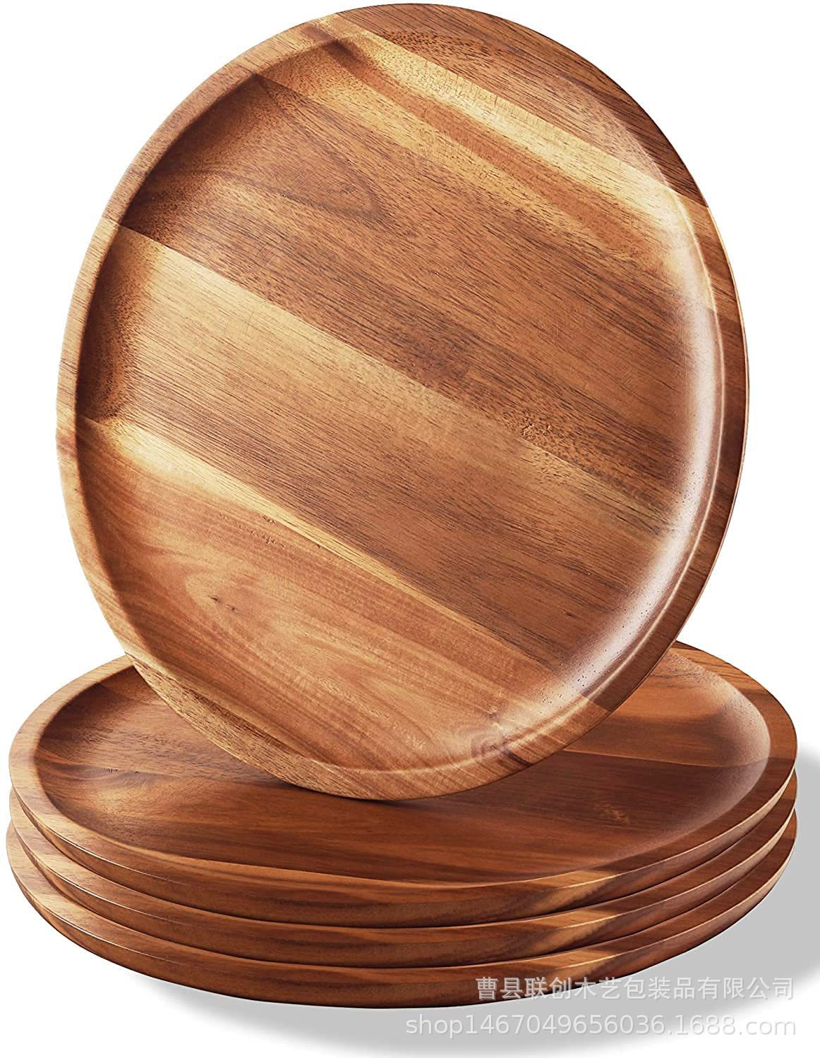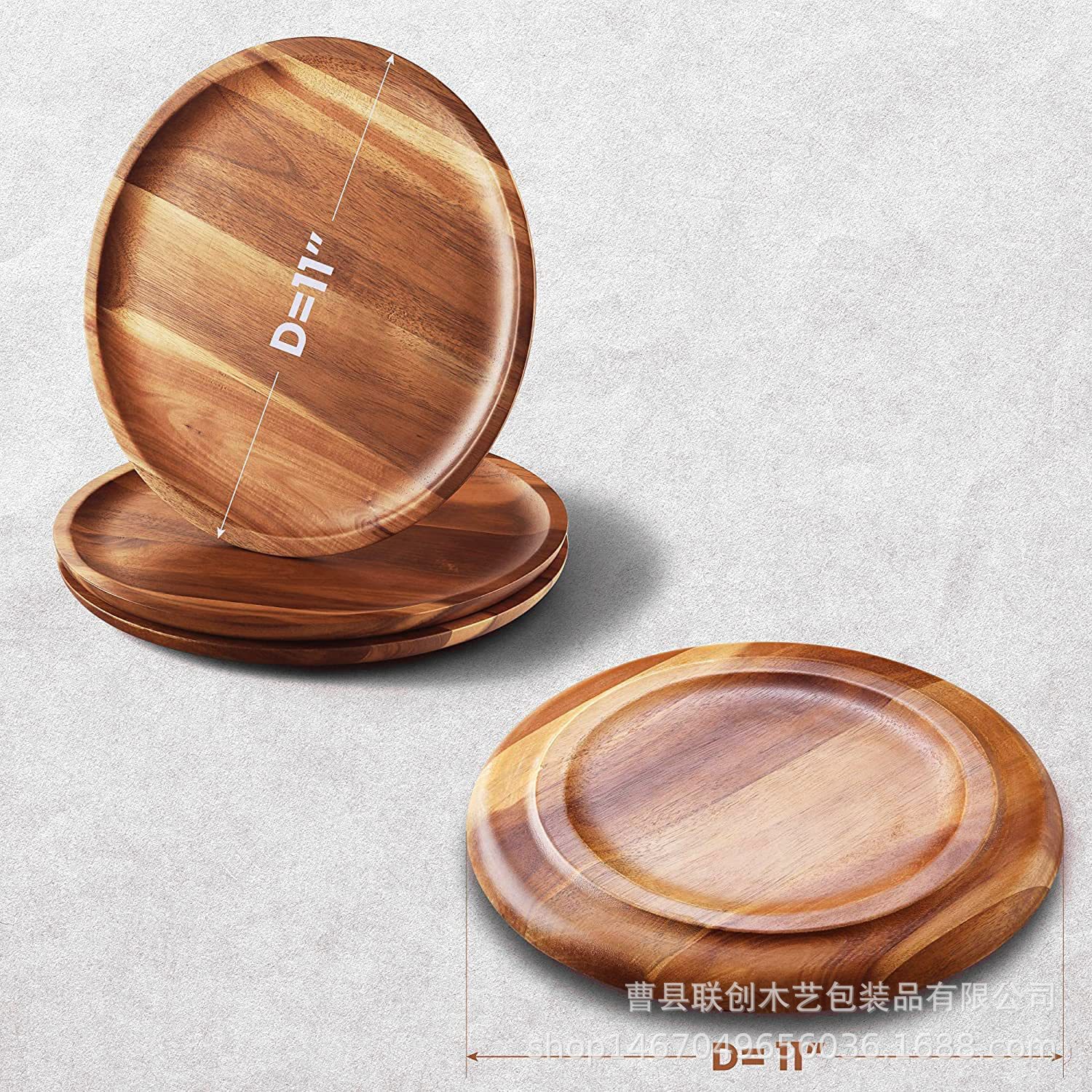 欧式台面点心装饰托盘早餐下午茶甜品实木托盘木质圆形托盘餐盘