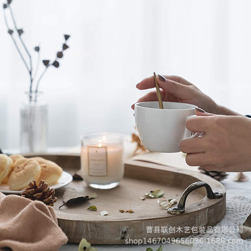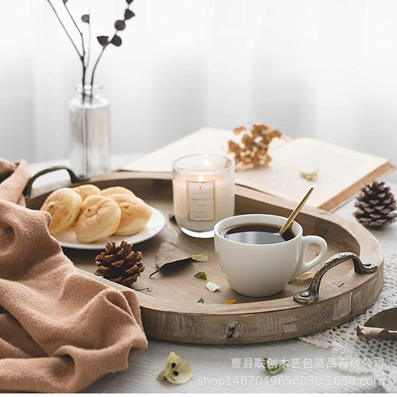 美式乡村实木收纳托盘茶水牛奶早餐餐盘餐厅咖啡厅服务木质托盘