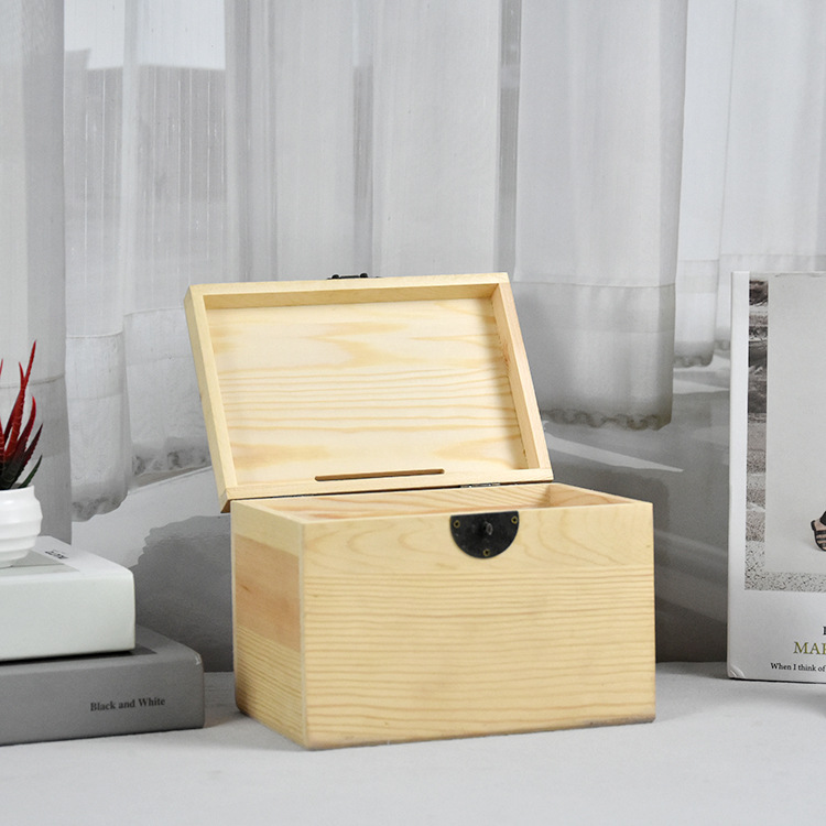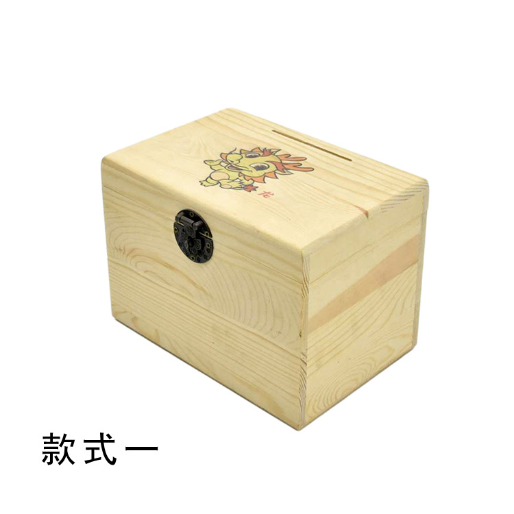 木制硬币纸币零钱储蓄罐 儿童零花零用钱收纳储存罐 木质复古木盒
