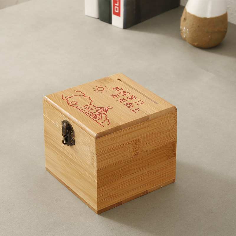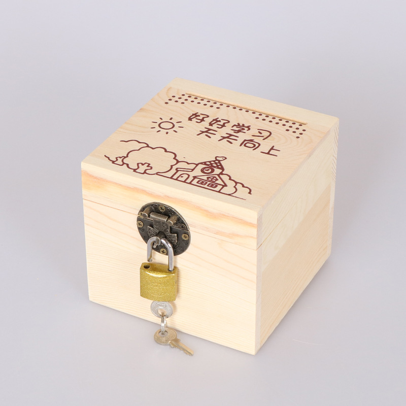 创意大号木质存钱罐 成人儿童防摔储蓄罐 仿真卡通带锁收纳木盒