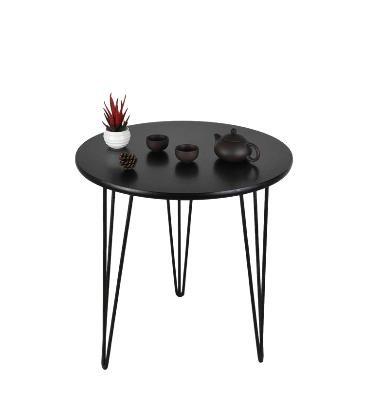日式家居圆形小茶几边几 木质北欧简约小桌子双层 黑色简易圆桌子