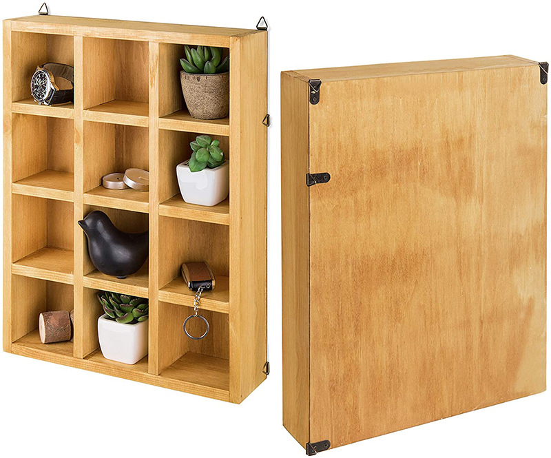 墙上置物架多格文玩水杯多肉收纳架实木壁挂式12盒整理架装饰挂架