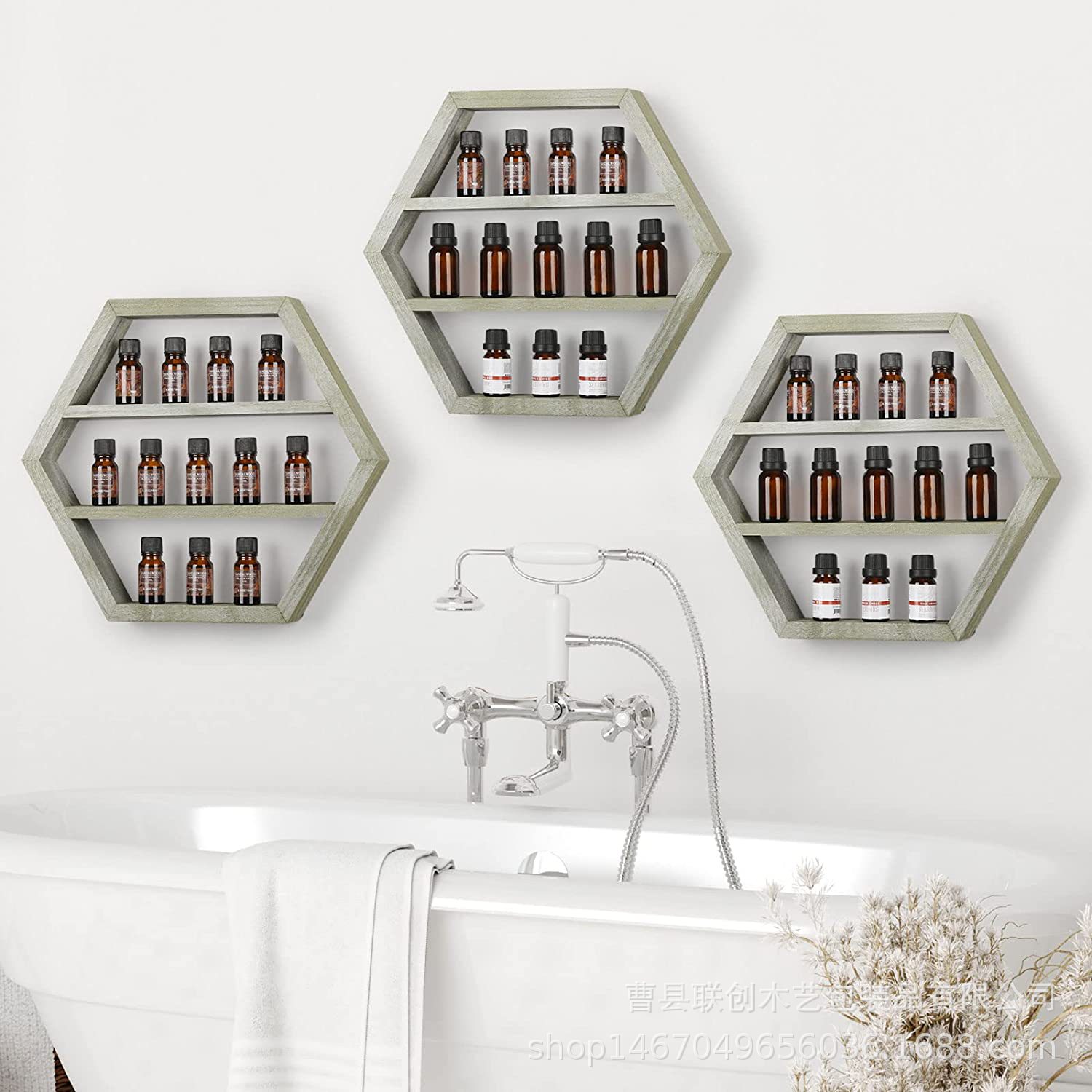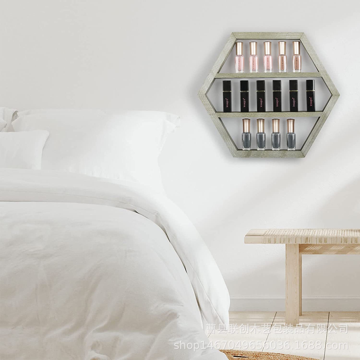 欧式实木壁挂式装饰精油架墙壁客厅美甲店甲油收纳架木质置物架