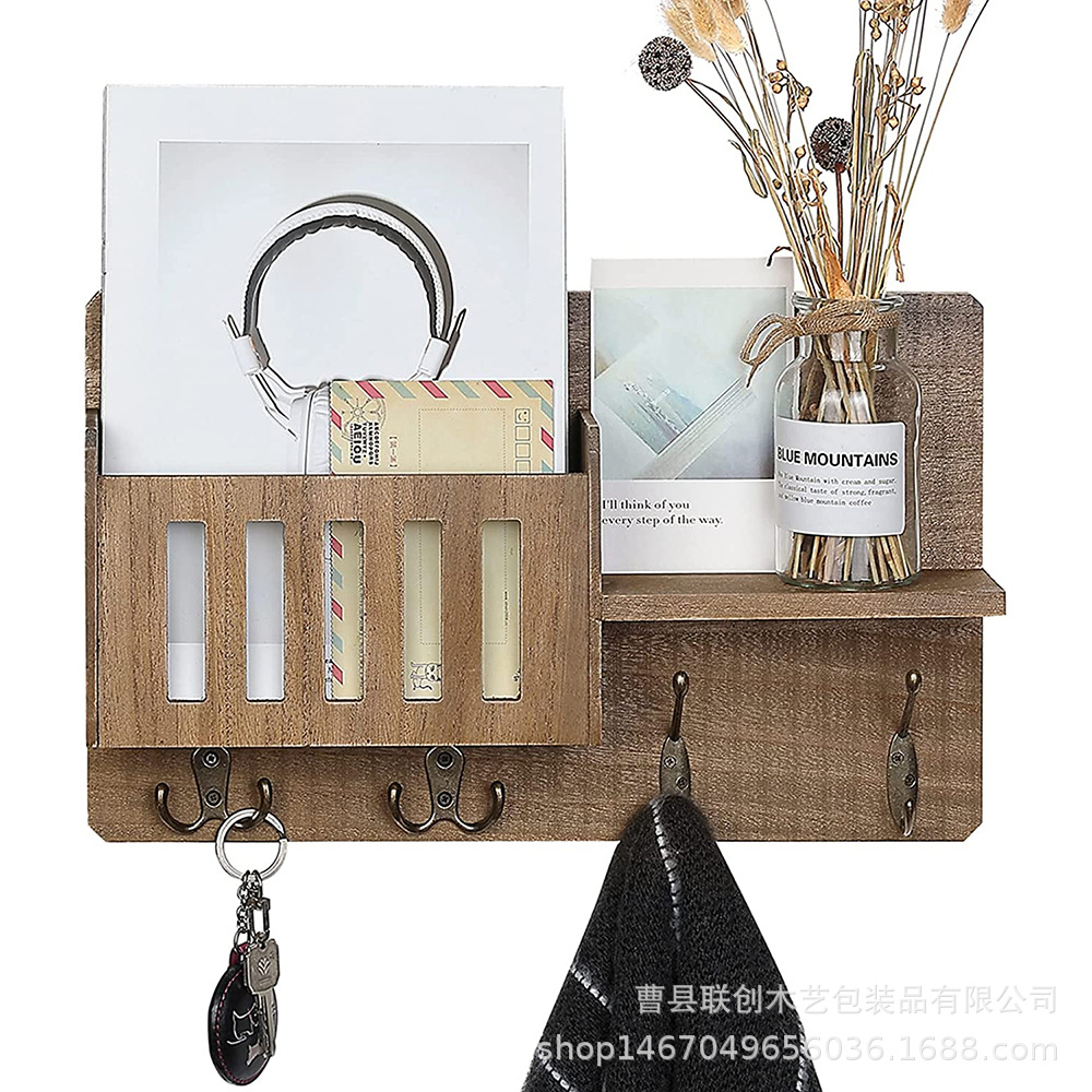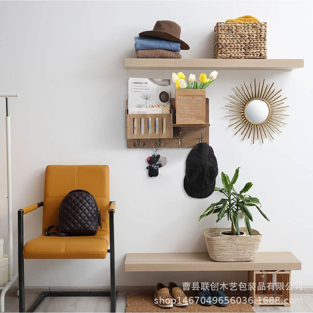 北欧木质墙壁收纳架客厅走廊钥匙实木展示整理架信件邮件置物架