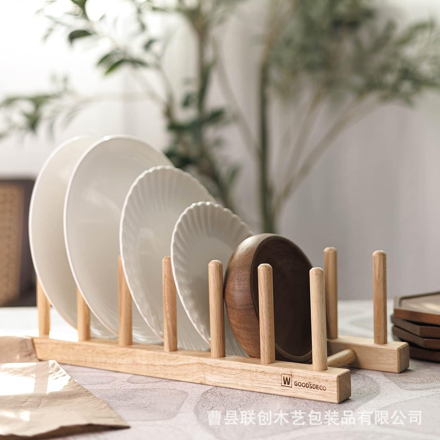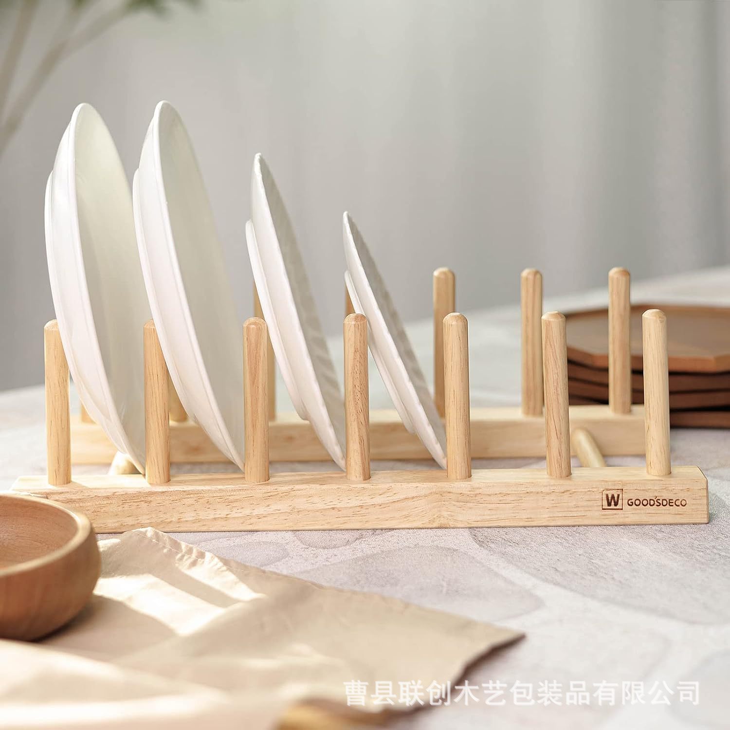 木质简约碗碟沥水架餐厅碗碟放置架家用盘子干燥架实木简约置物架