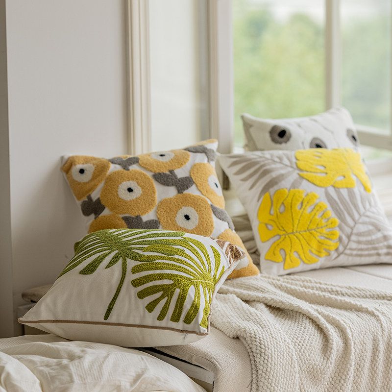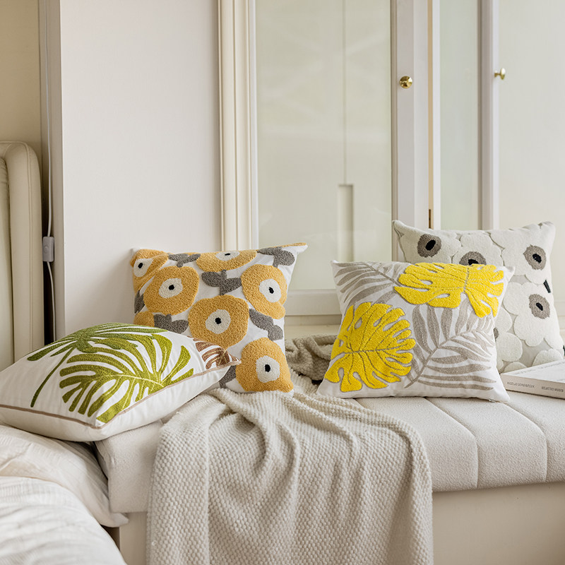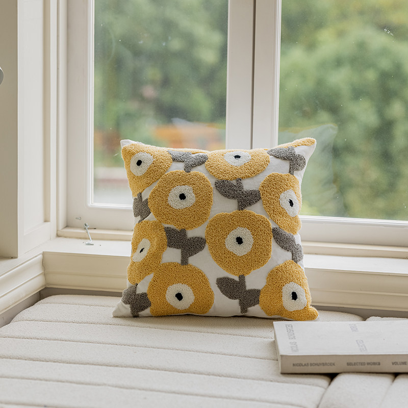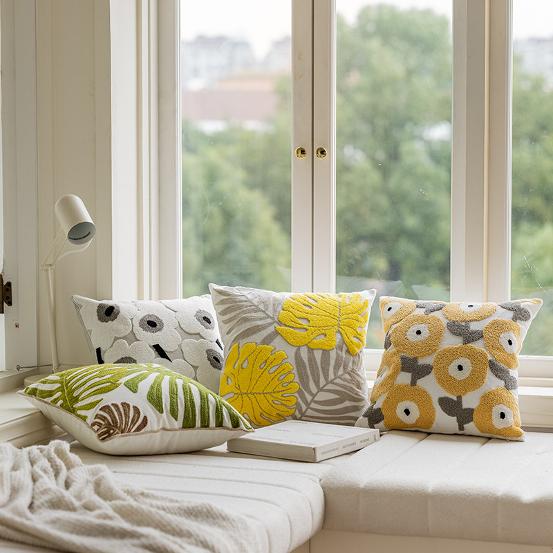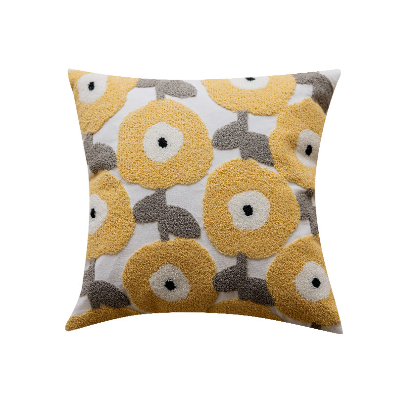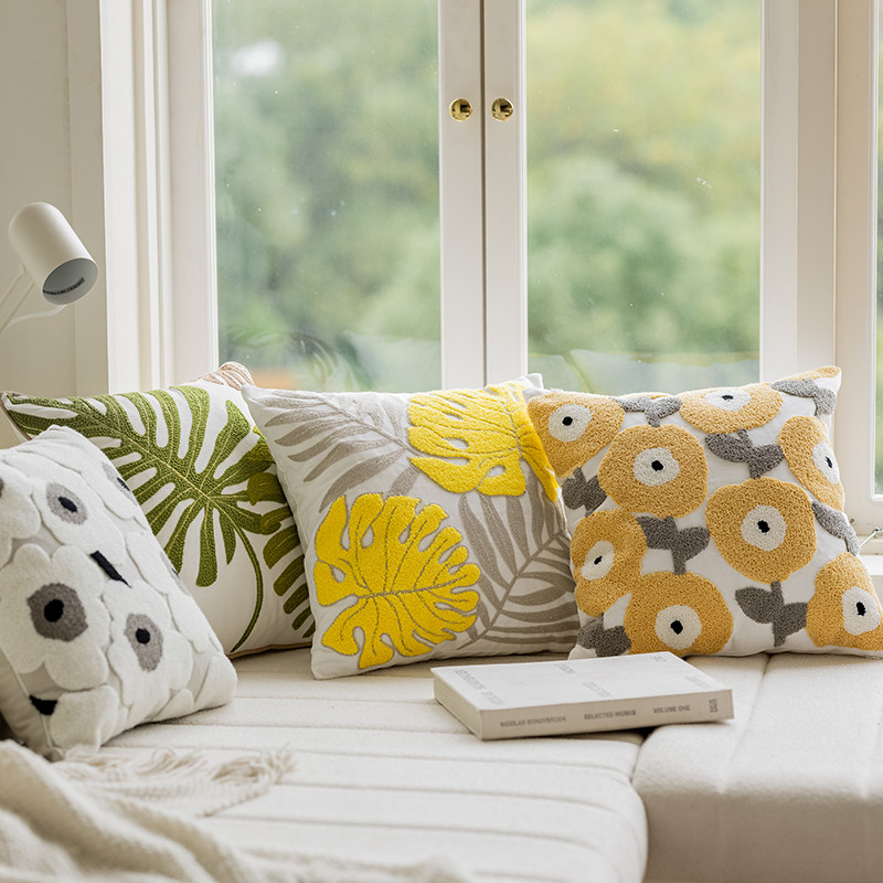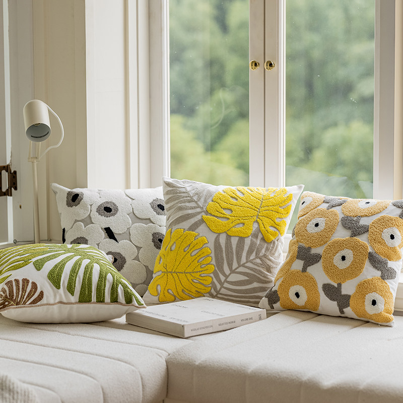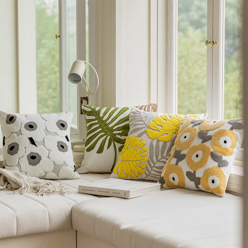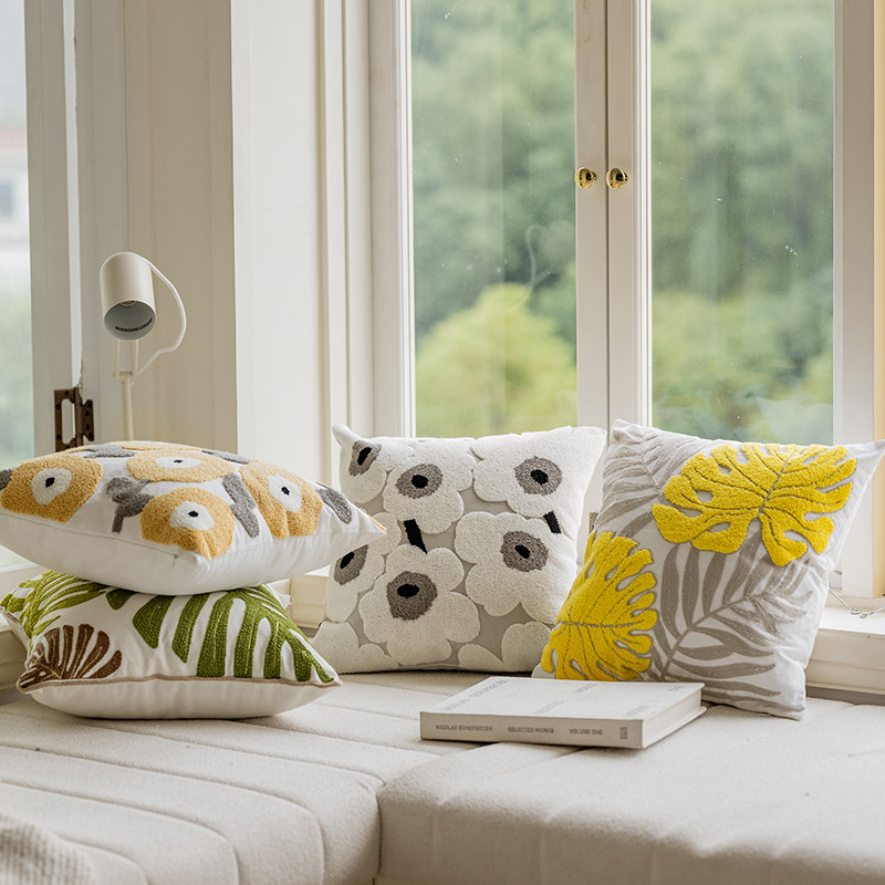 北欧简约田园花卉布艺抱枕靠垫毛巾绣床头靠背腰垫民宿样板间卧室
