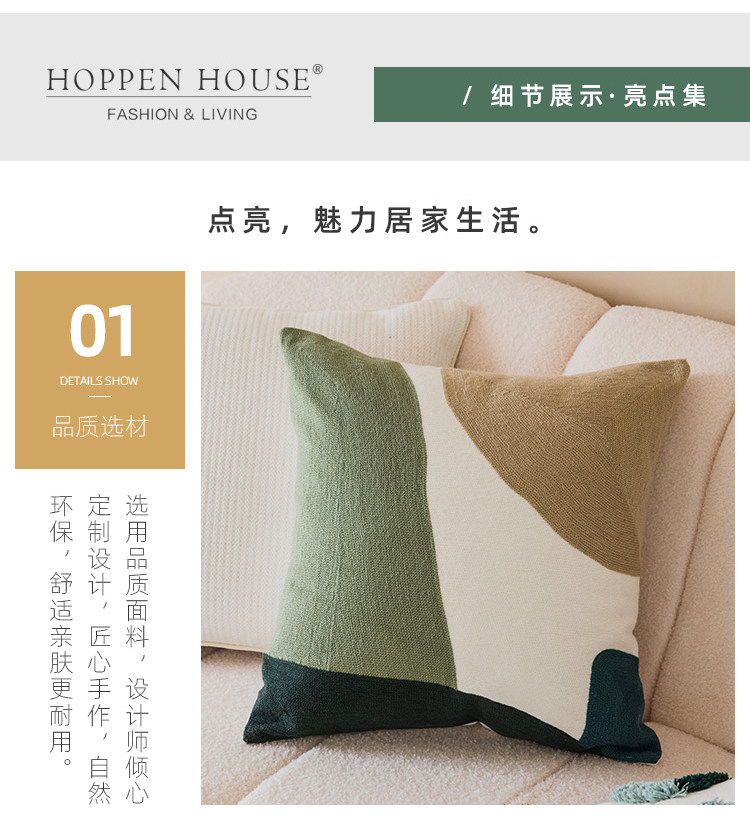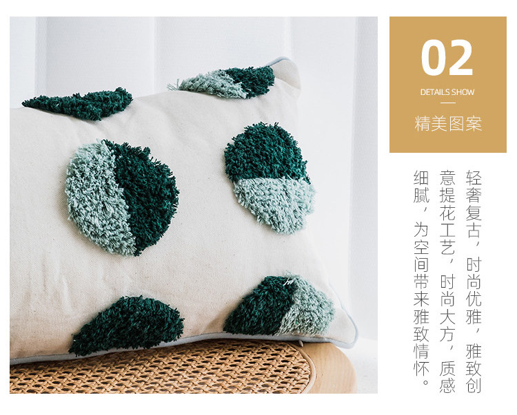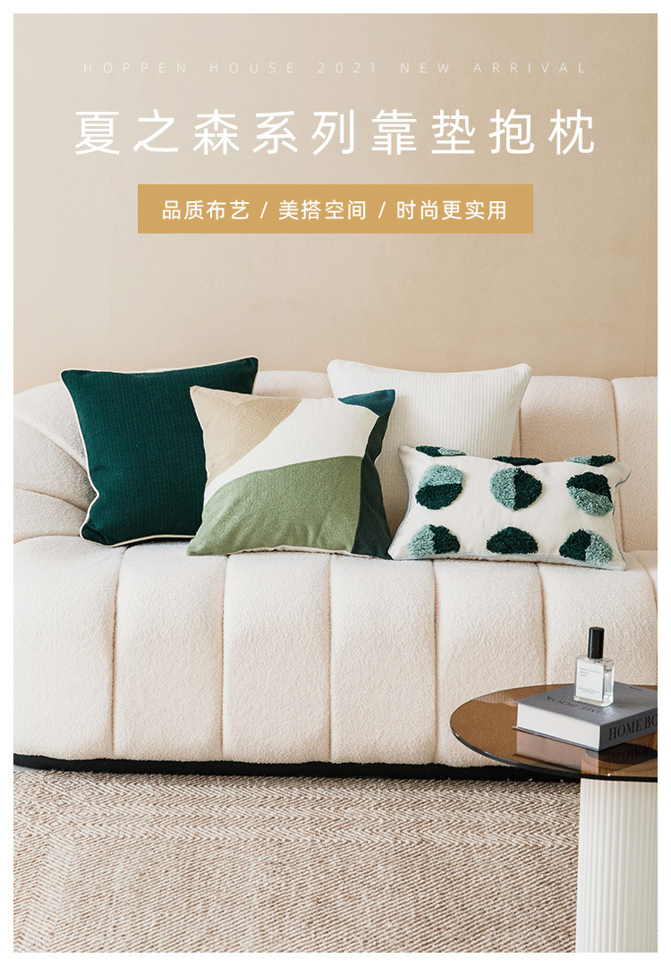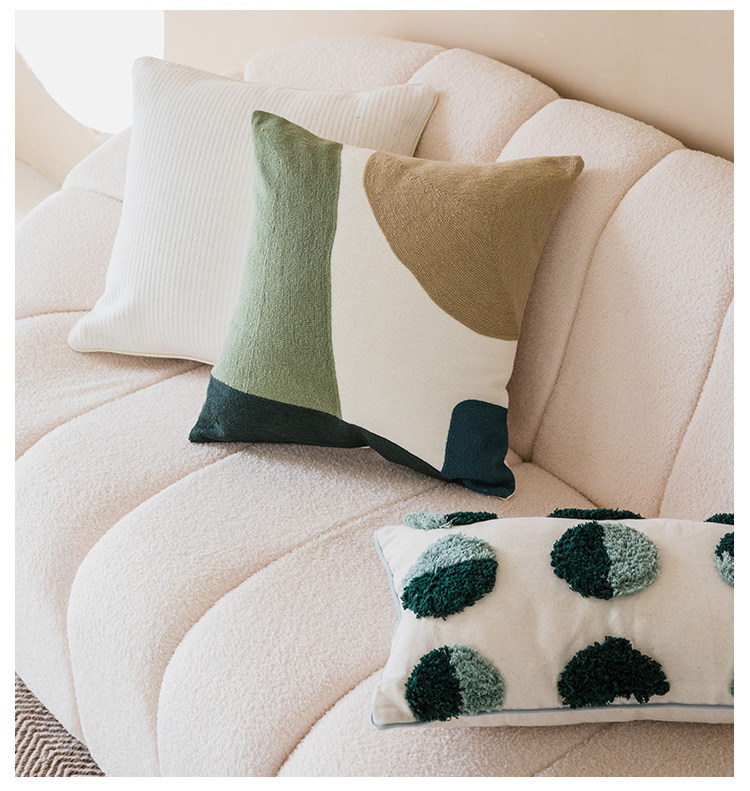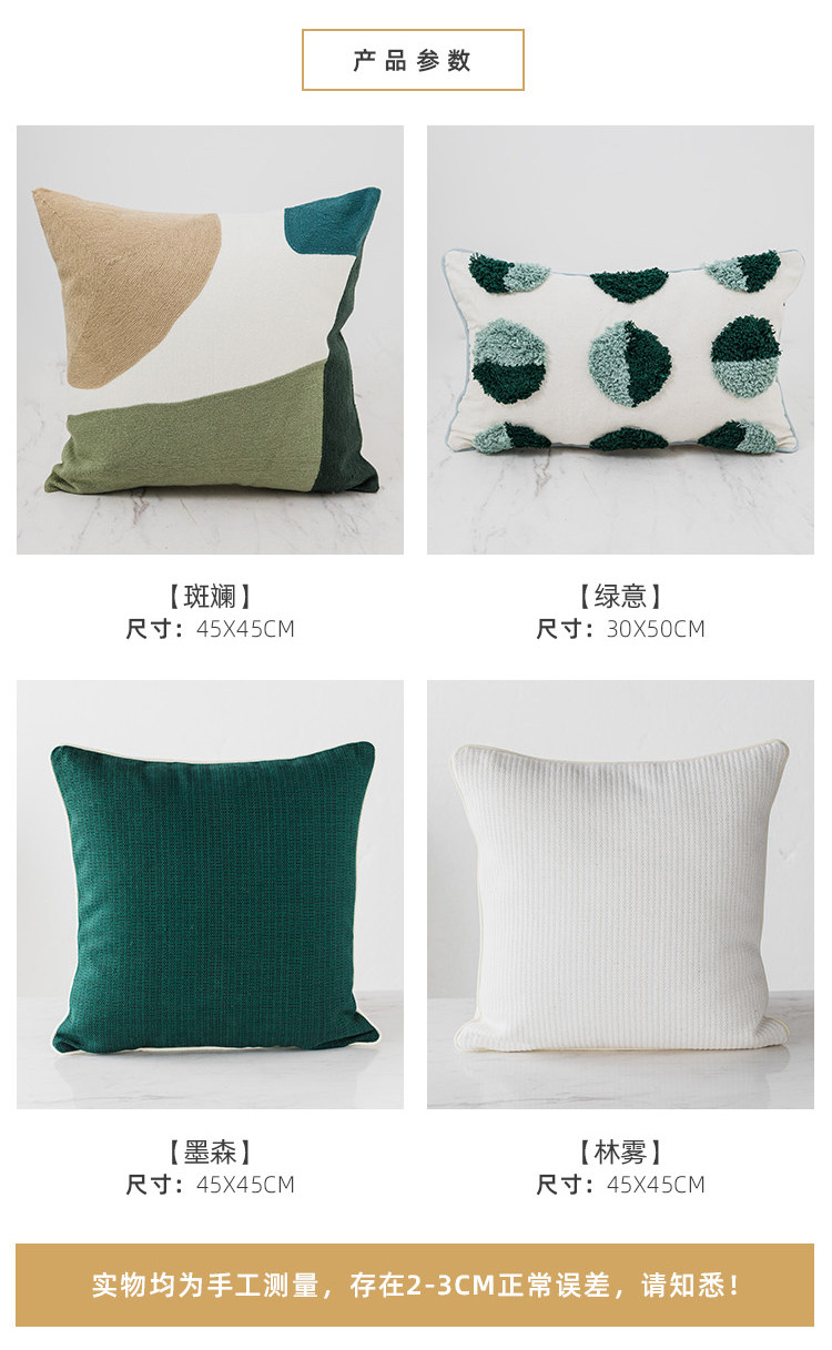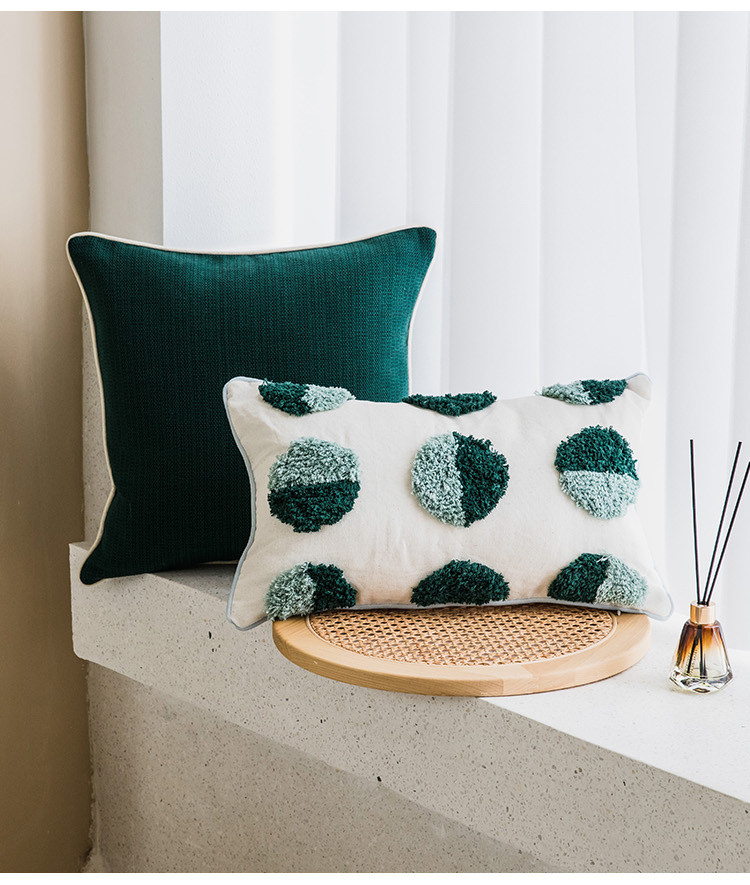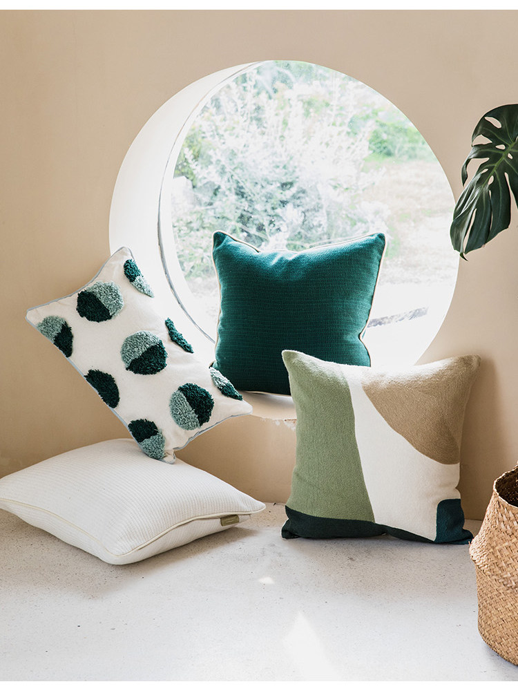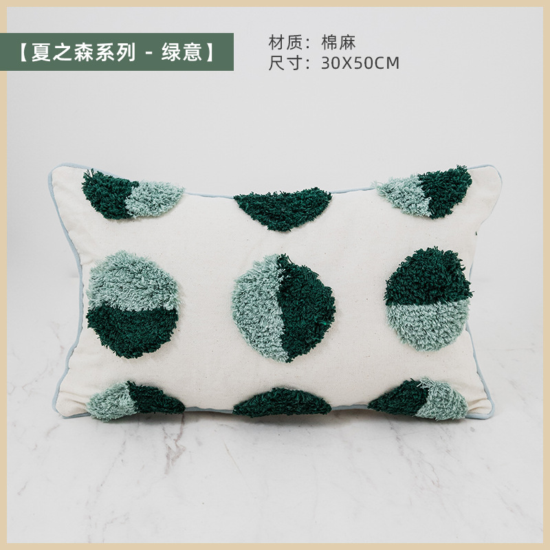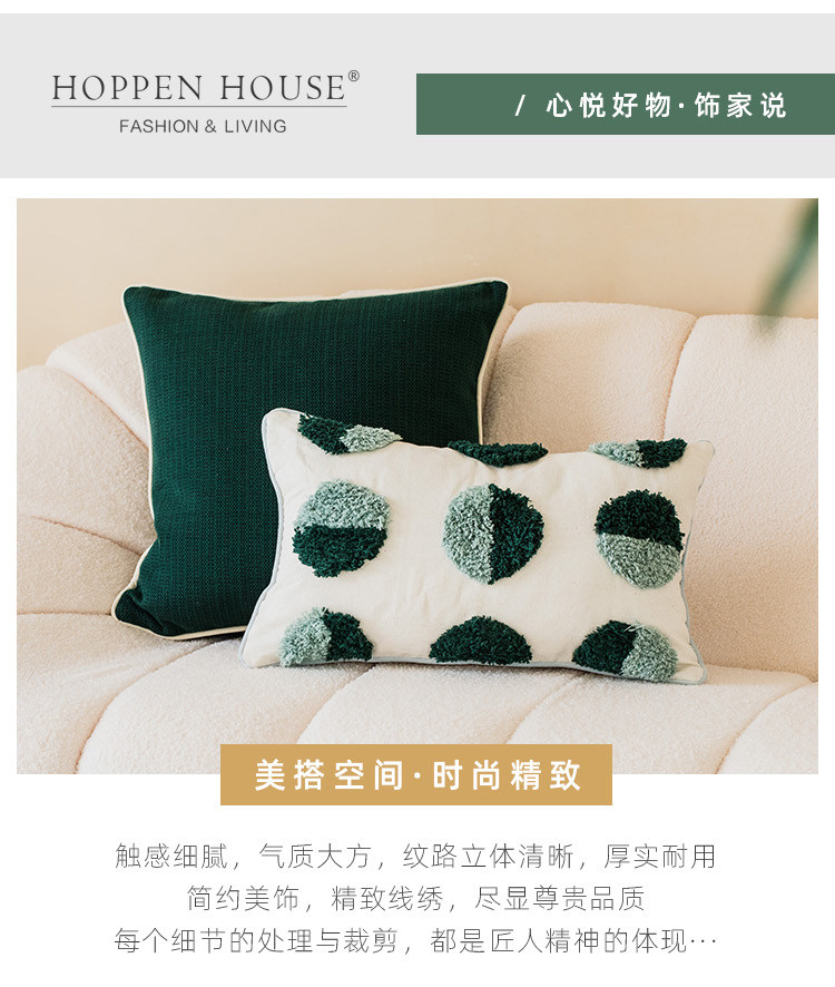 北欧风抱枕套绿色波点簇绒靠枕方枕腰枕组合现代美式客厅沙发靠垫