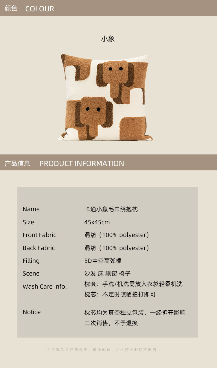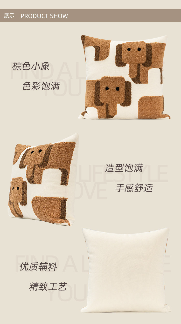 新品咖色毛巾绣小象可爱卡通抱枕靠垫坐垫客厅沙发卧室靠枕可拆洗