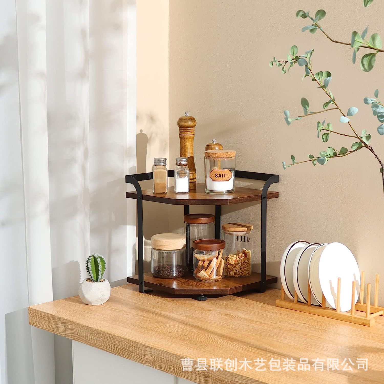 木质厨房调料存储架家用桌面摆件装饰架化妆品整理架实木储物架