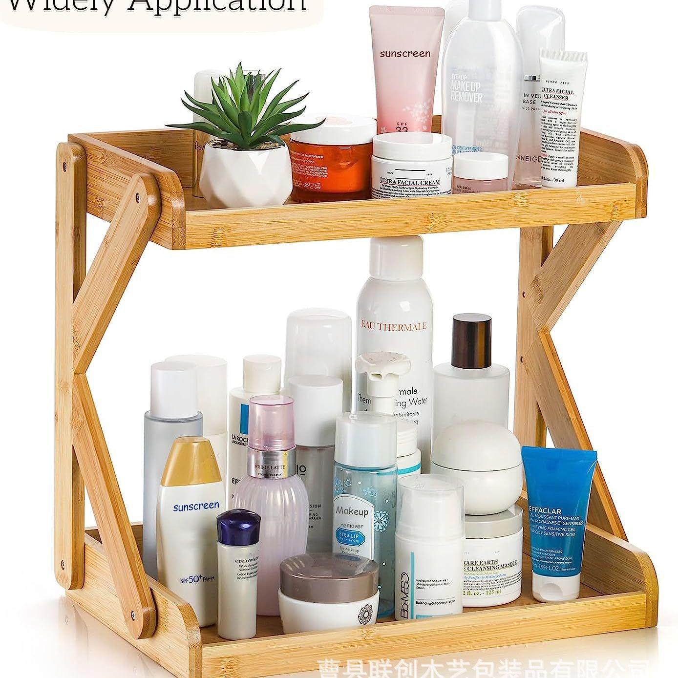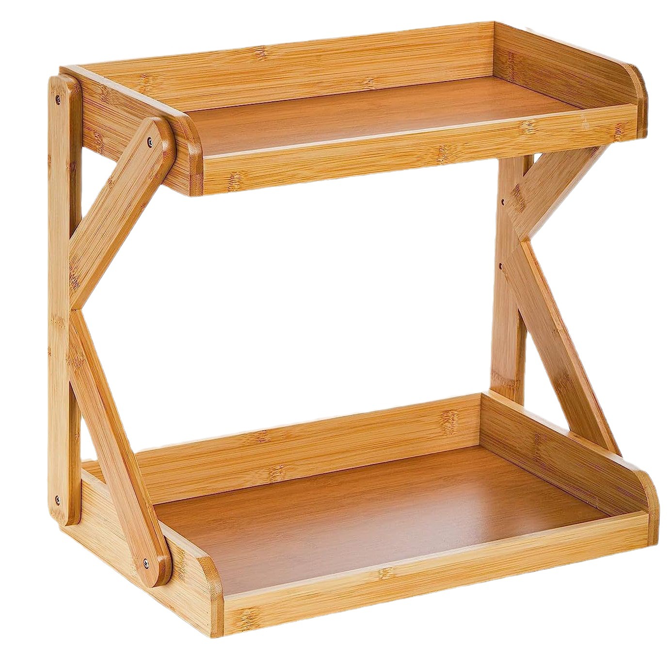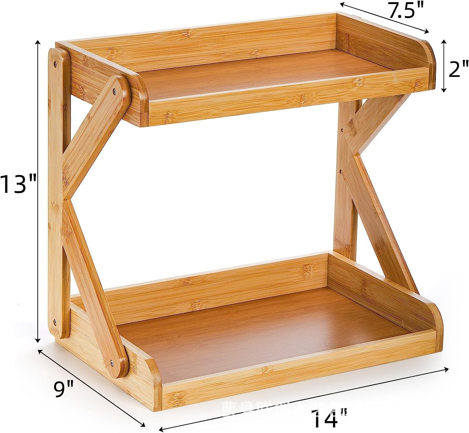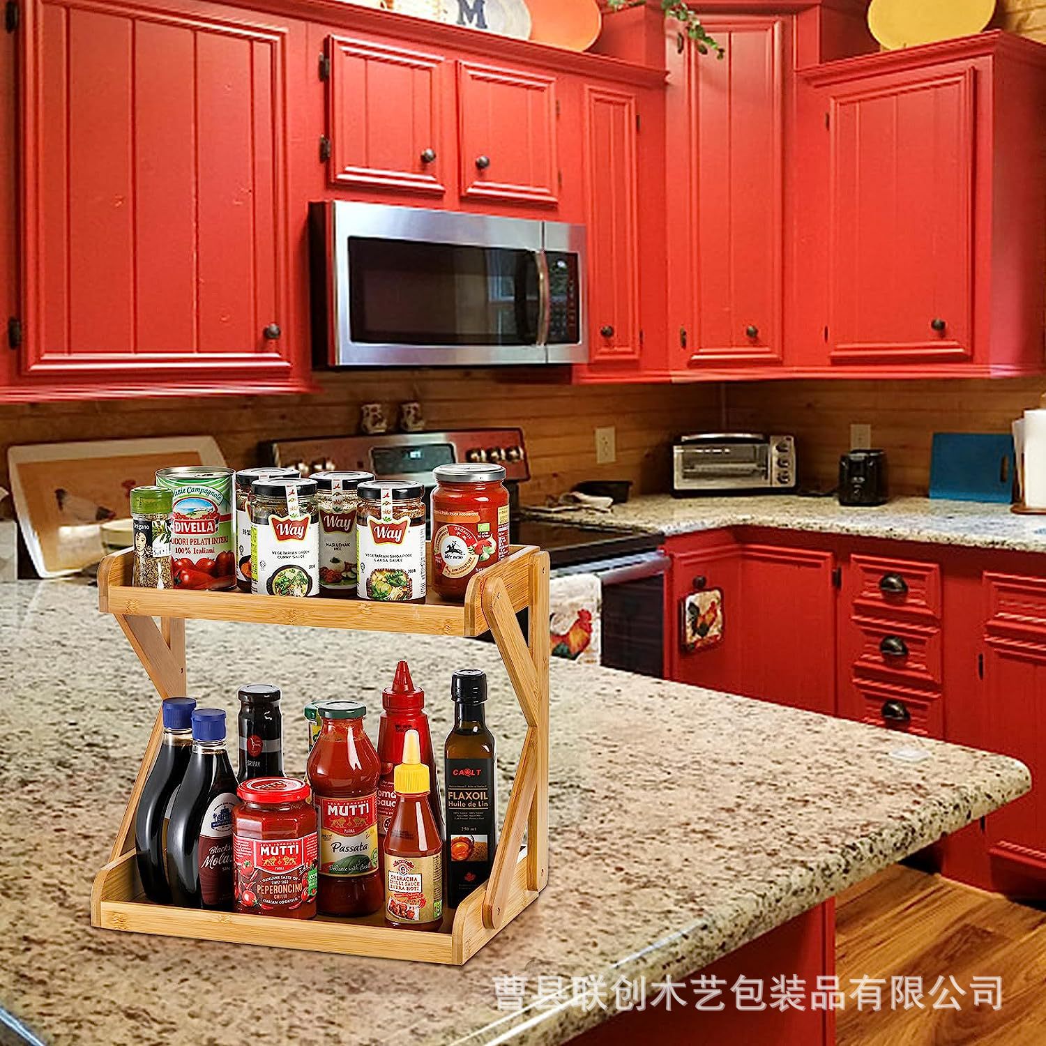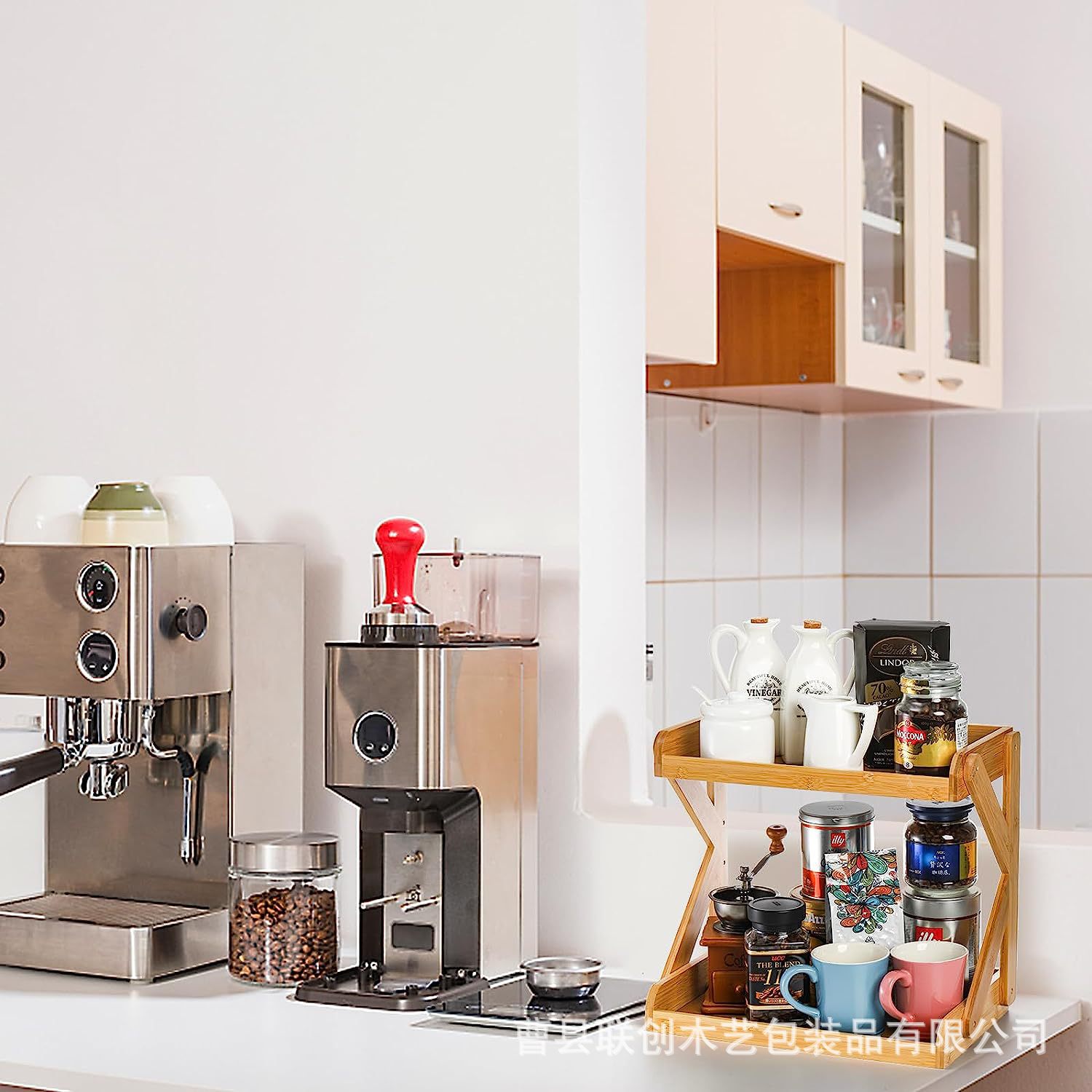 简约实木双层置物架咖啡豆咖啡用品存储架厨房台面调味品储物架