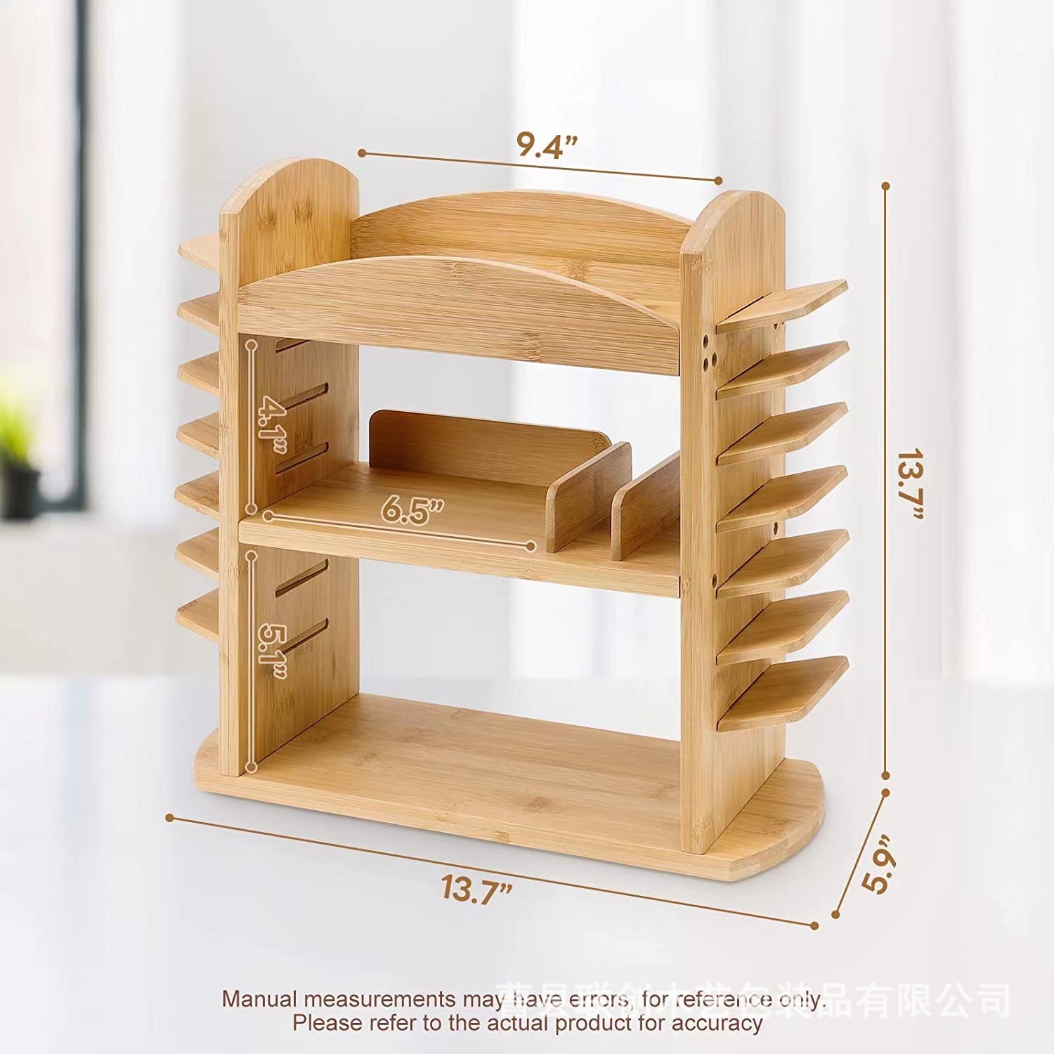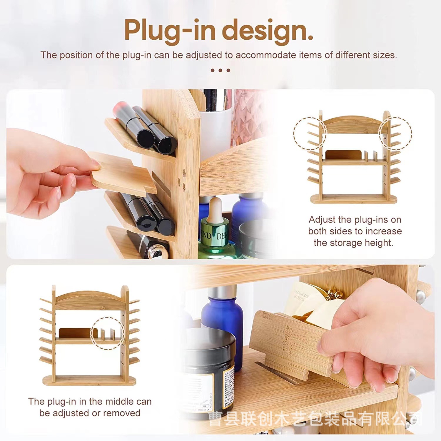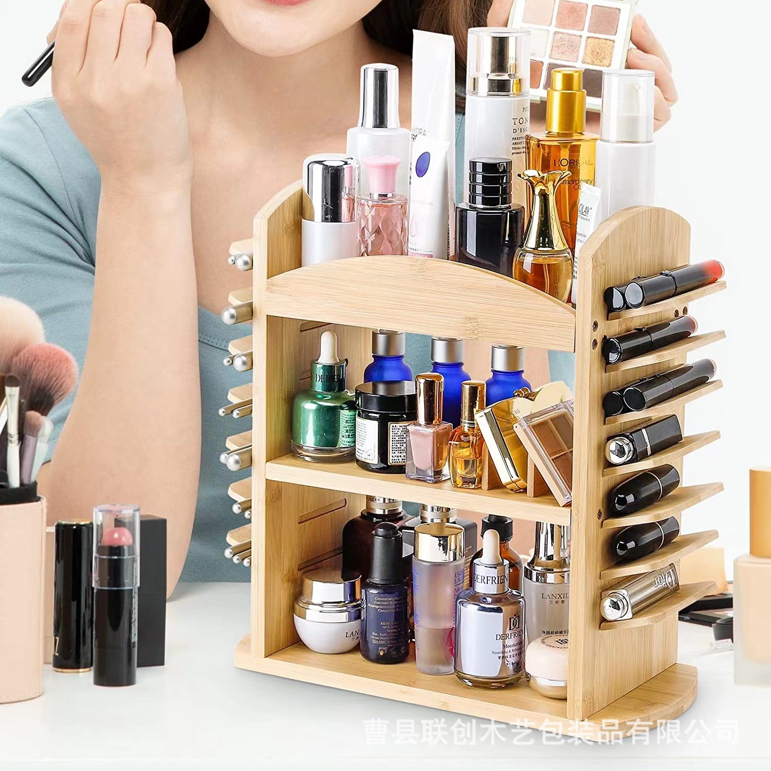 跨境梳妆台化妆品口红收纳架桌面多层分类整理木架竹制陈列展示架