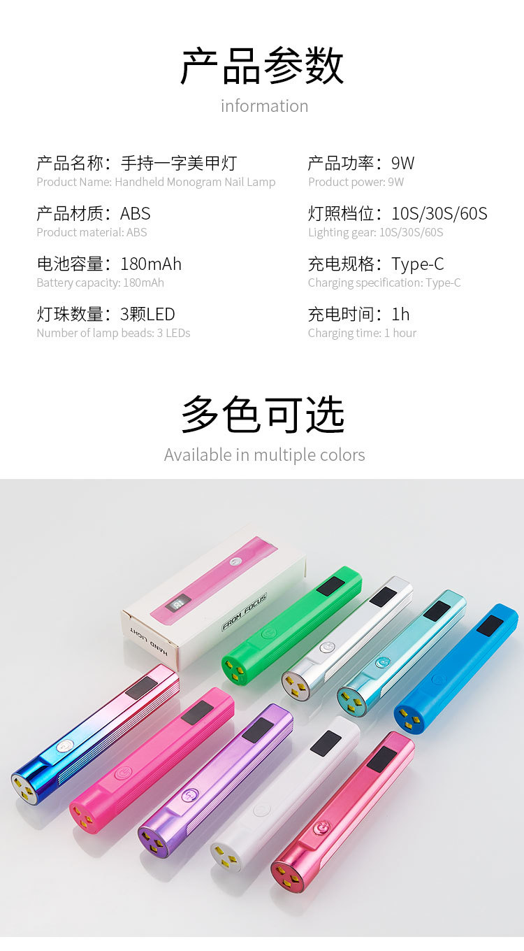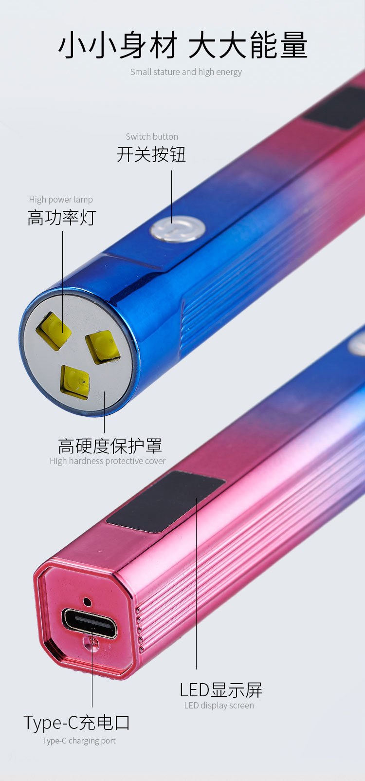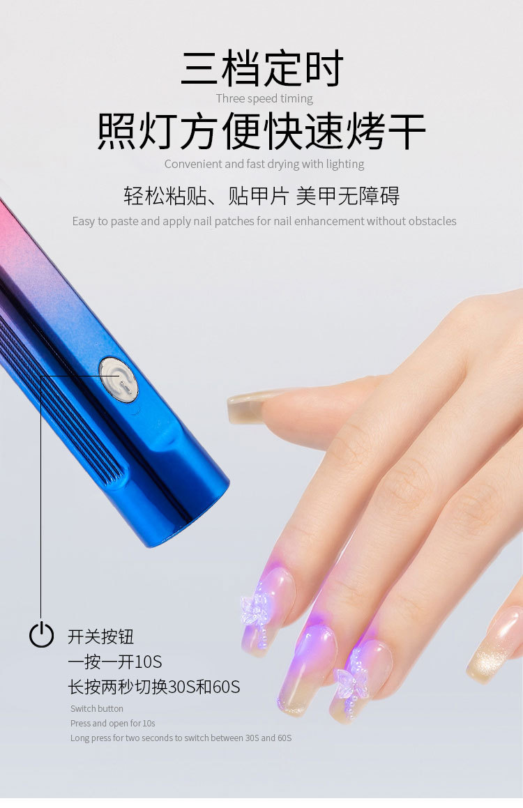 跨境美甲一字灯便捷式蓄电迷你手持美甲灯美甲店专用甲油胶烘干机