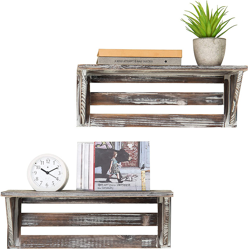 复古墙上客厅卧室置物架壁挂式墙面装饰收纳架多肉闹钟实木展示架