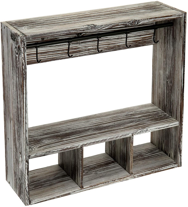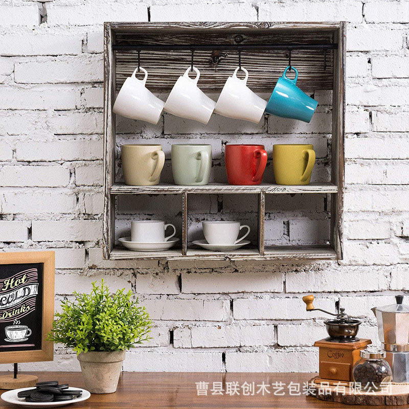 厨房墙面壁挂式水杯马克杯收纳餐厅墙面装饰咖啡杯展示木质置物架