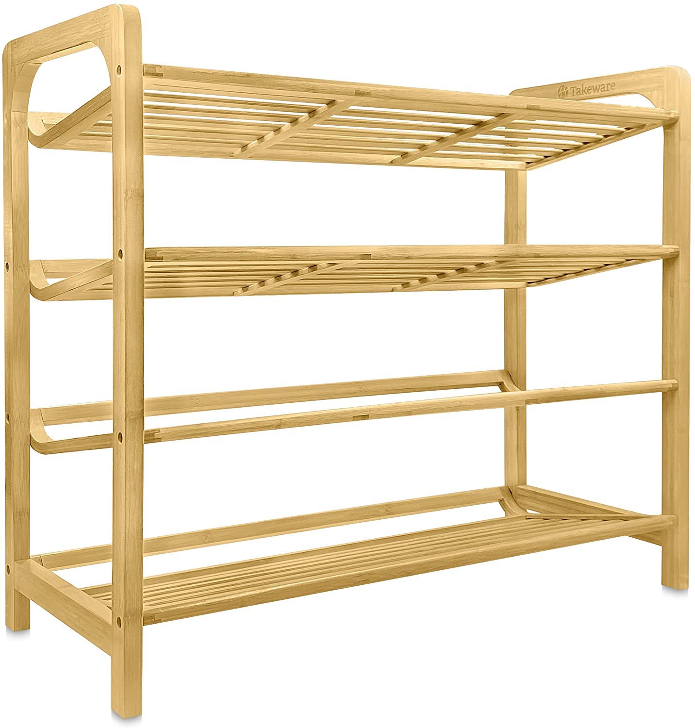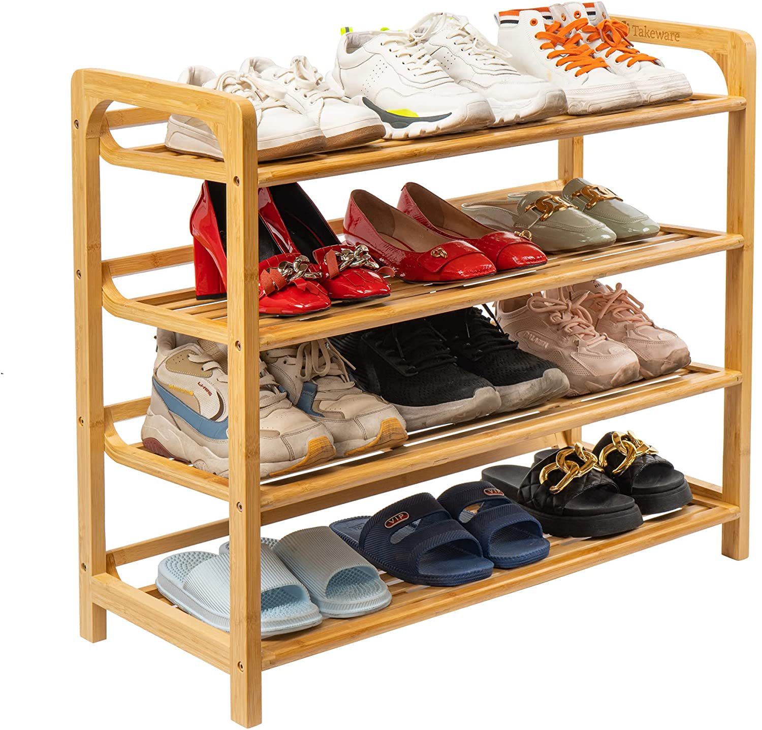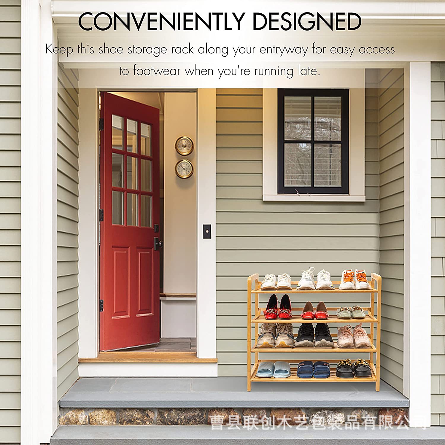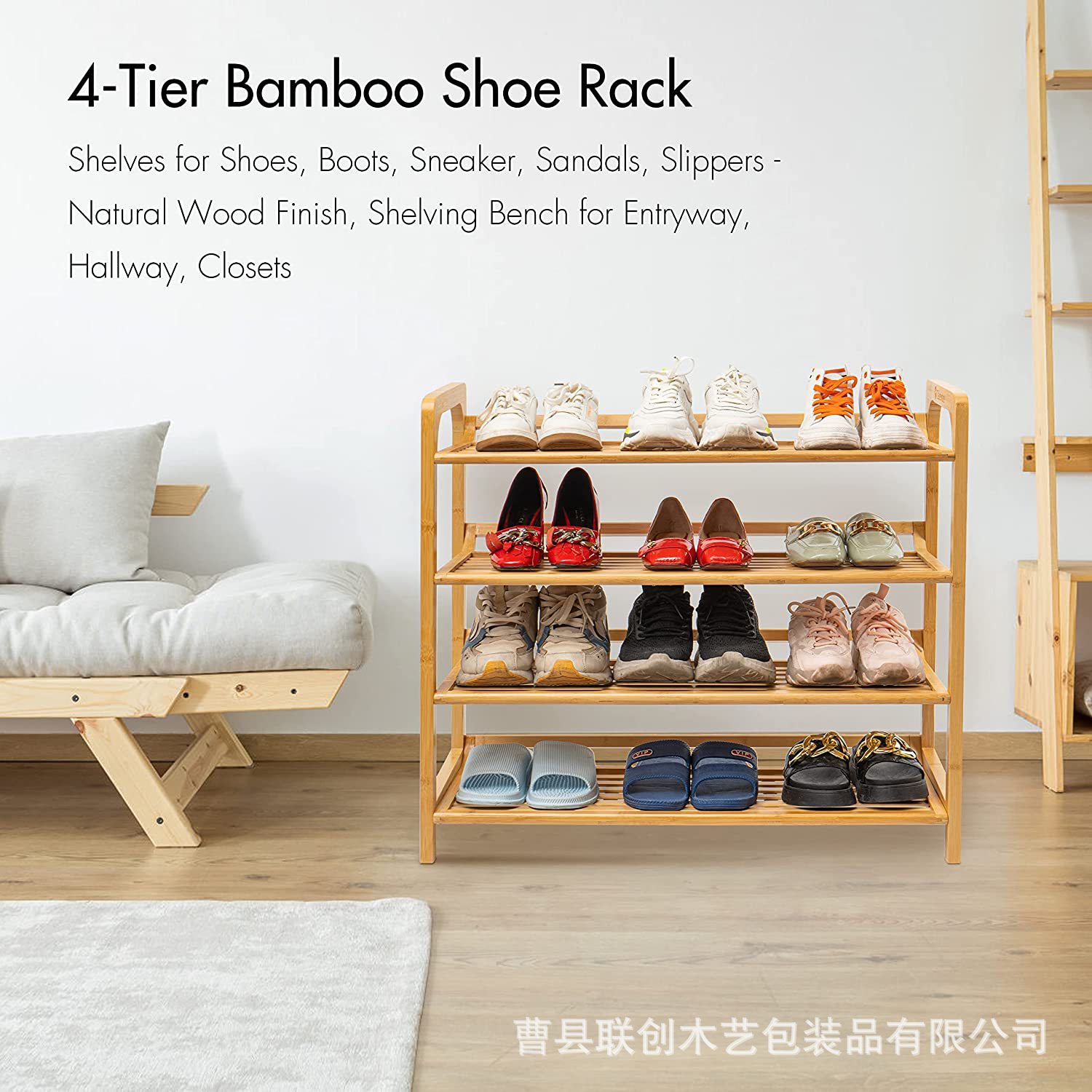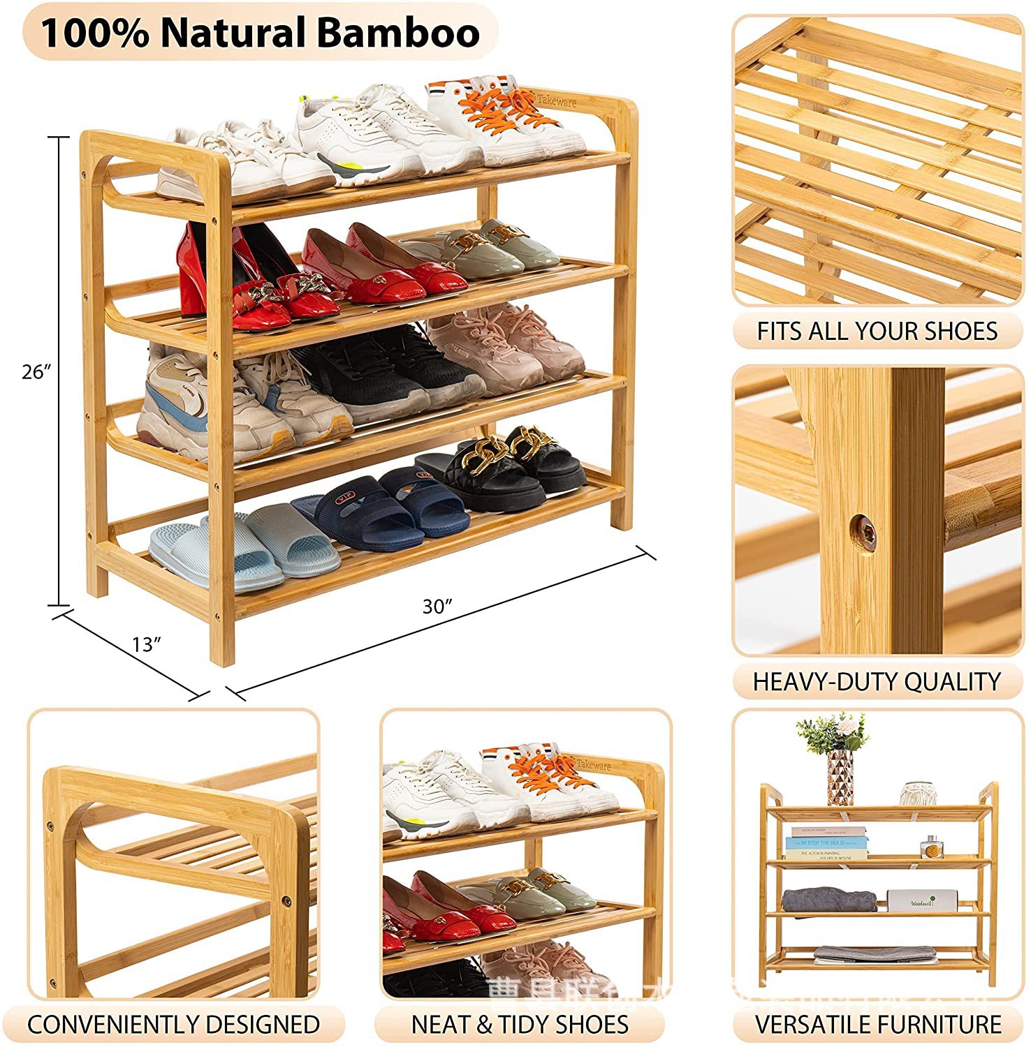 家居门口走廊运动鞋收纳架四层竹制鞋架多用途浴室毛巾木制置物架