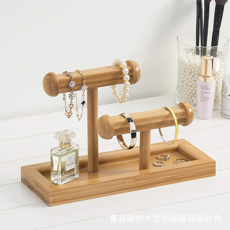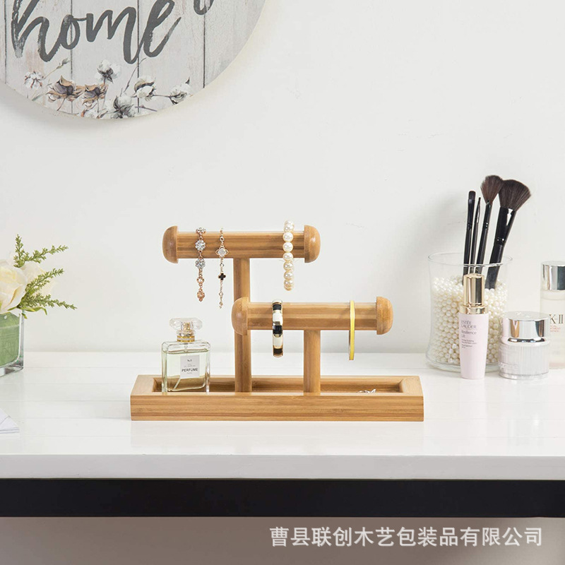 家居梳妆台桌面首饰收纳架手镯手链展示陈列创意高低木质首饰架