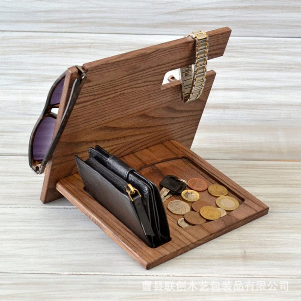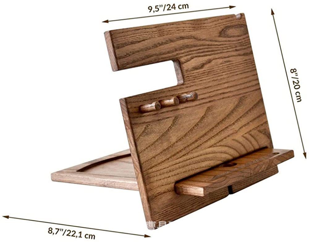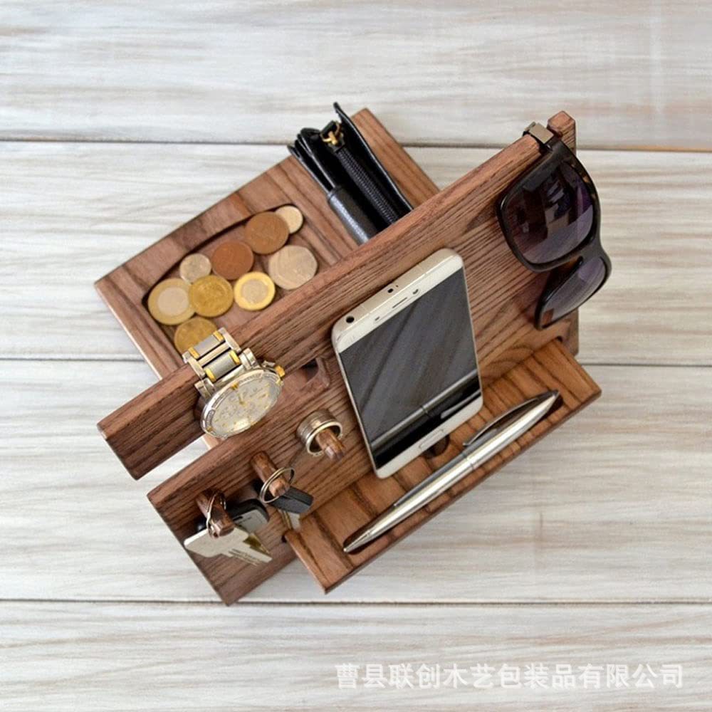 多用途可拆卸实木桌面收纳架懒人手机底座可挂眼镜手表平板支架