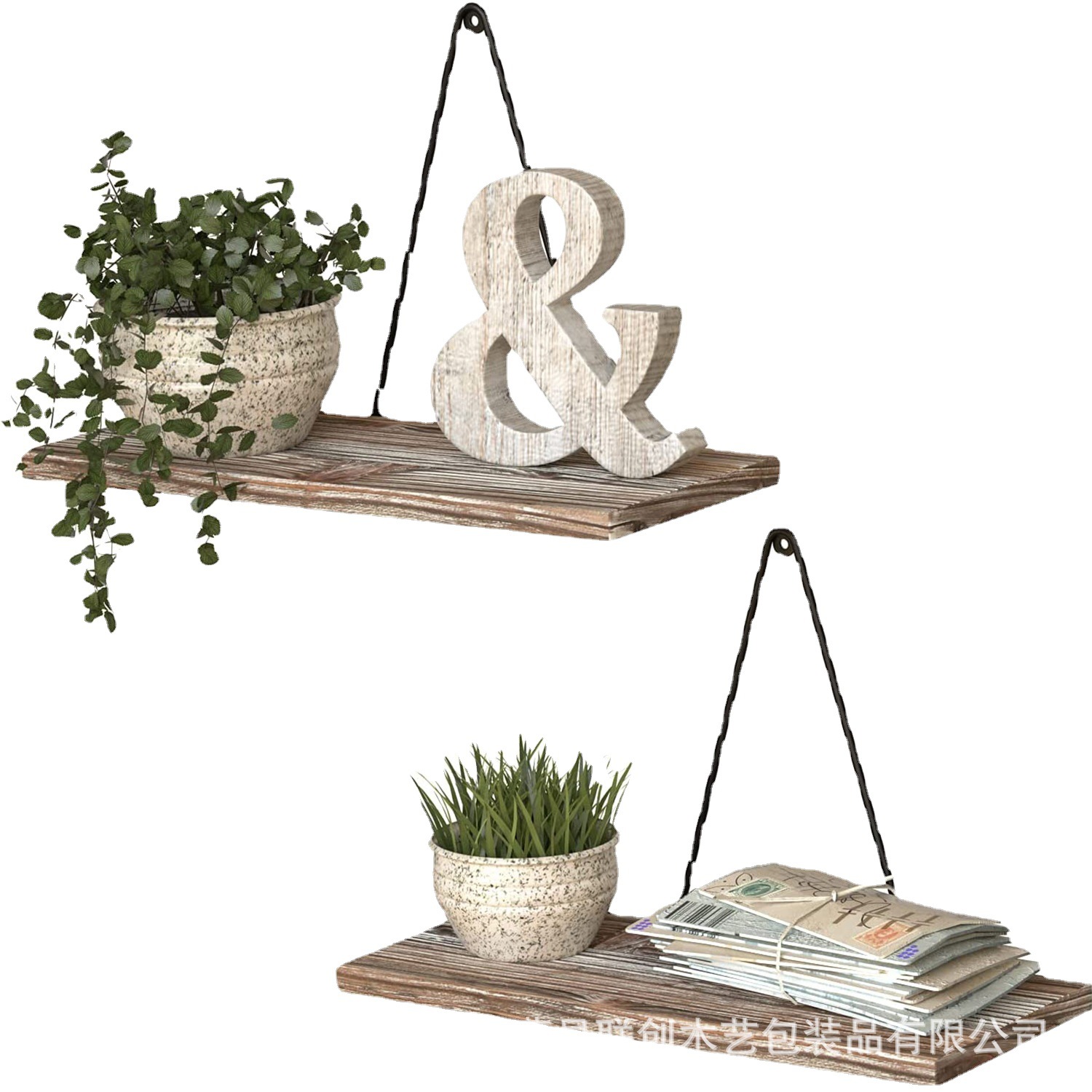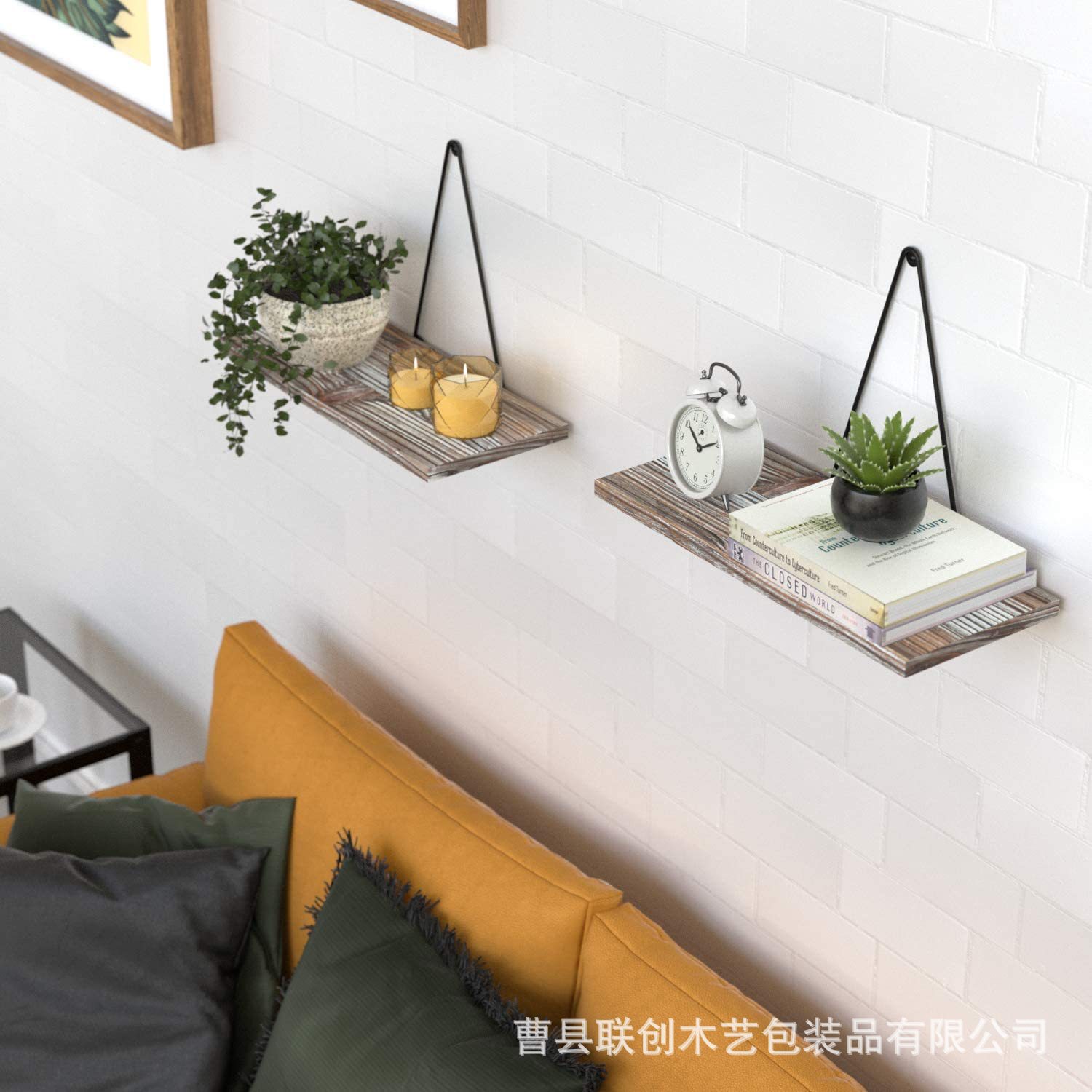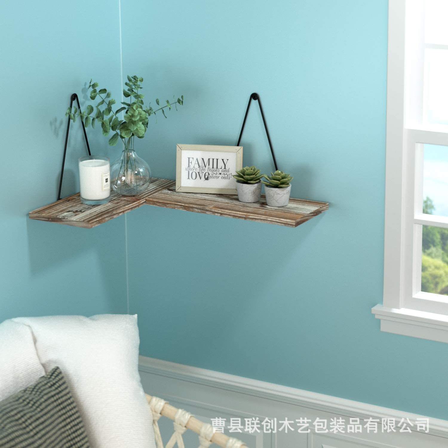 乡村风格木质置物架客厅卧室带三角支架墙壁角落隔板壁挂式2件套