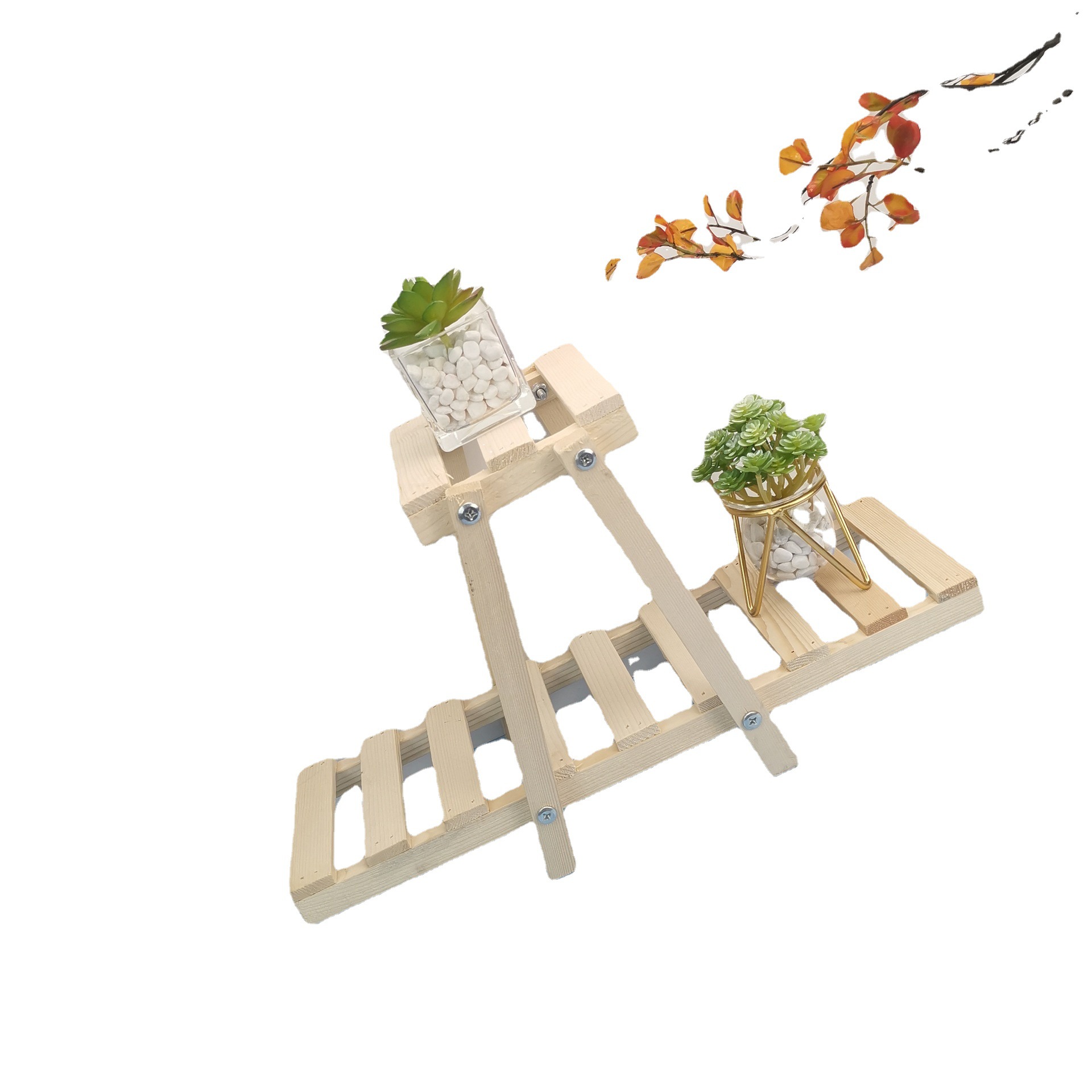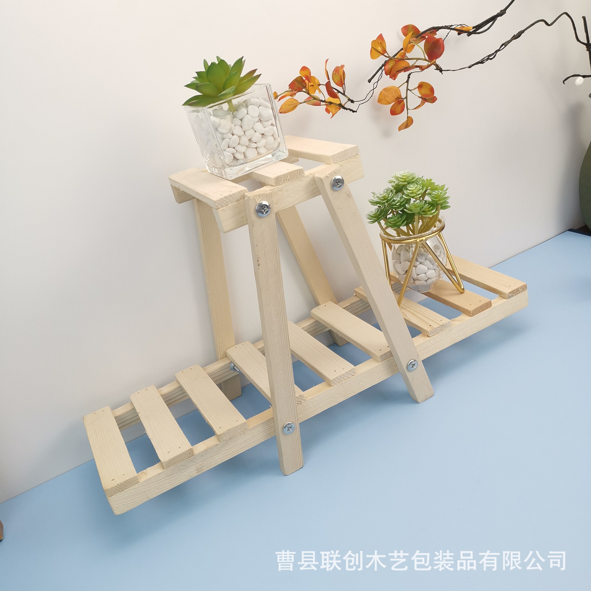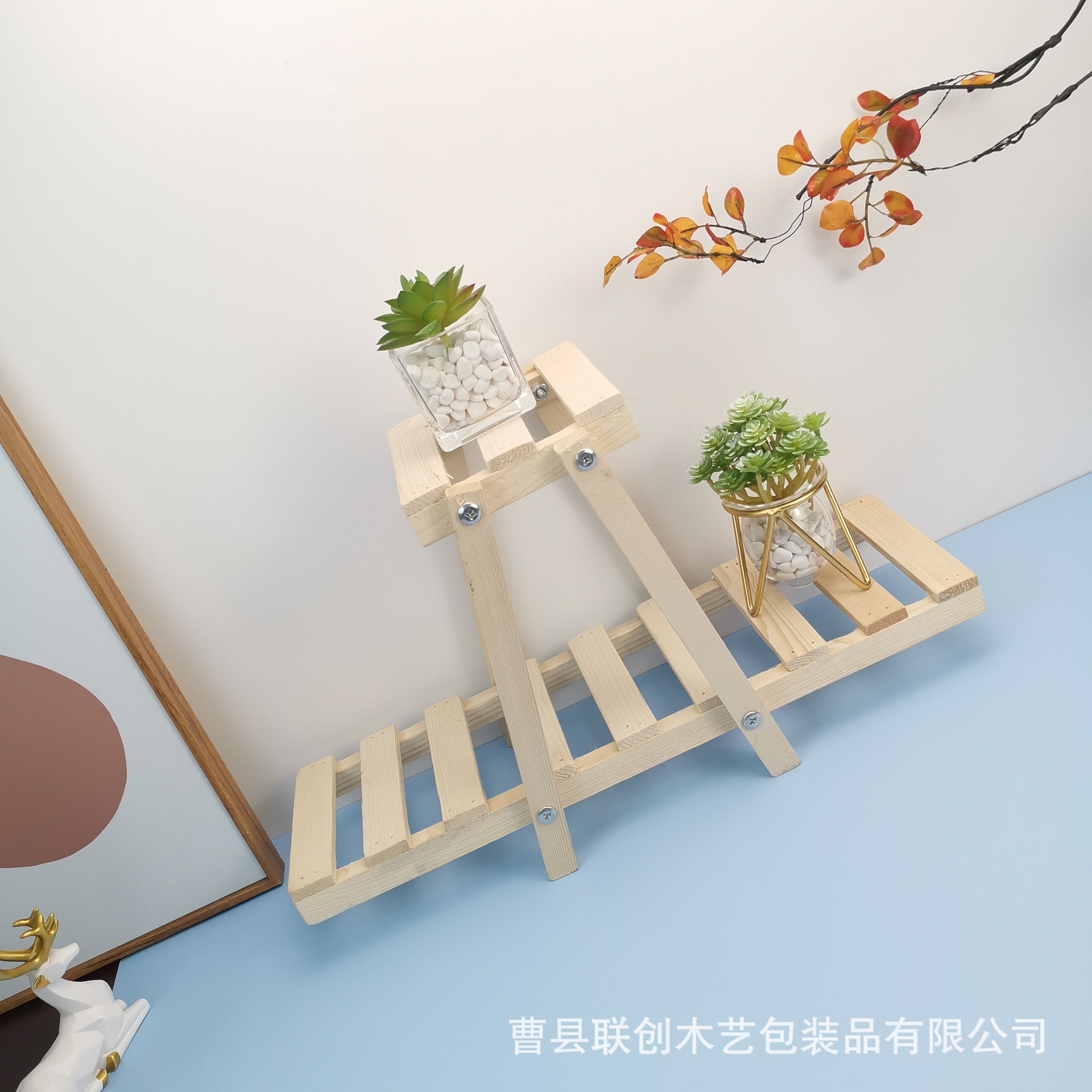 木质置物架多肉花架桌面阳台办公室收纳架创意双层折叠小花架