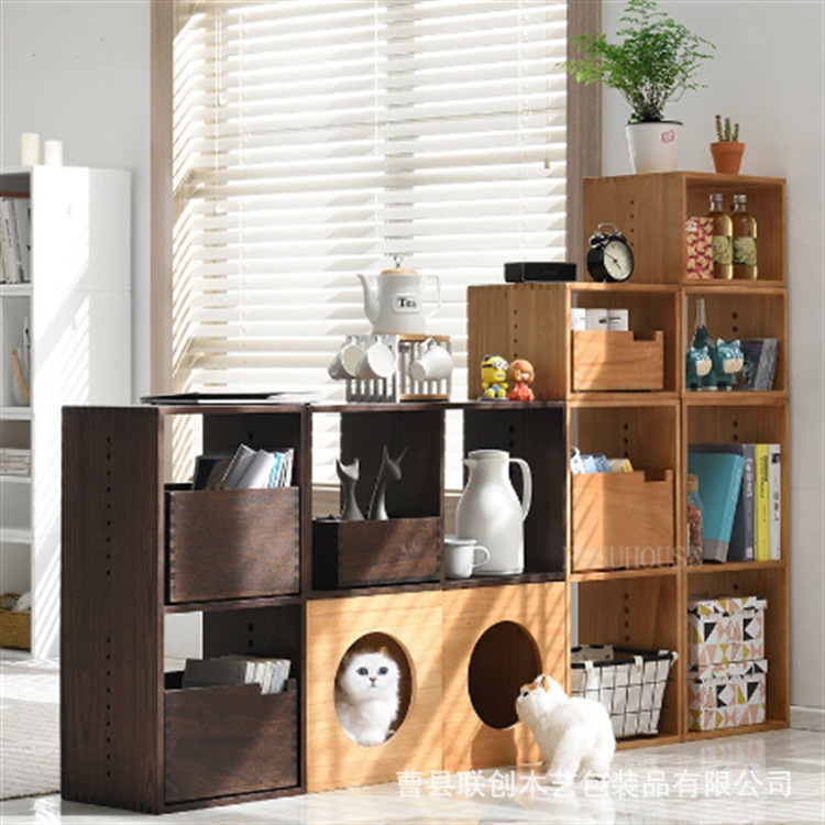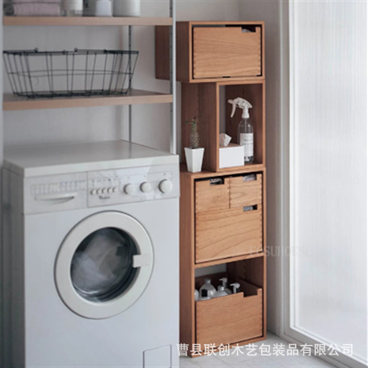 复古风实木自由组合置物架一体书架收纳整理架客厅阳台木质储物架