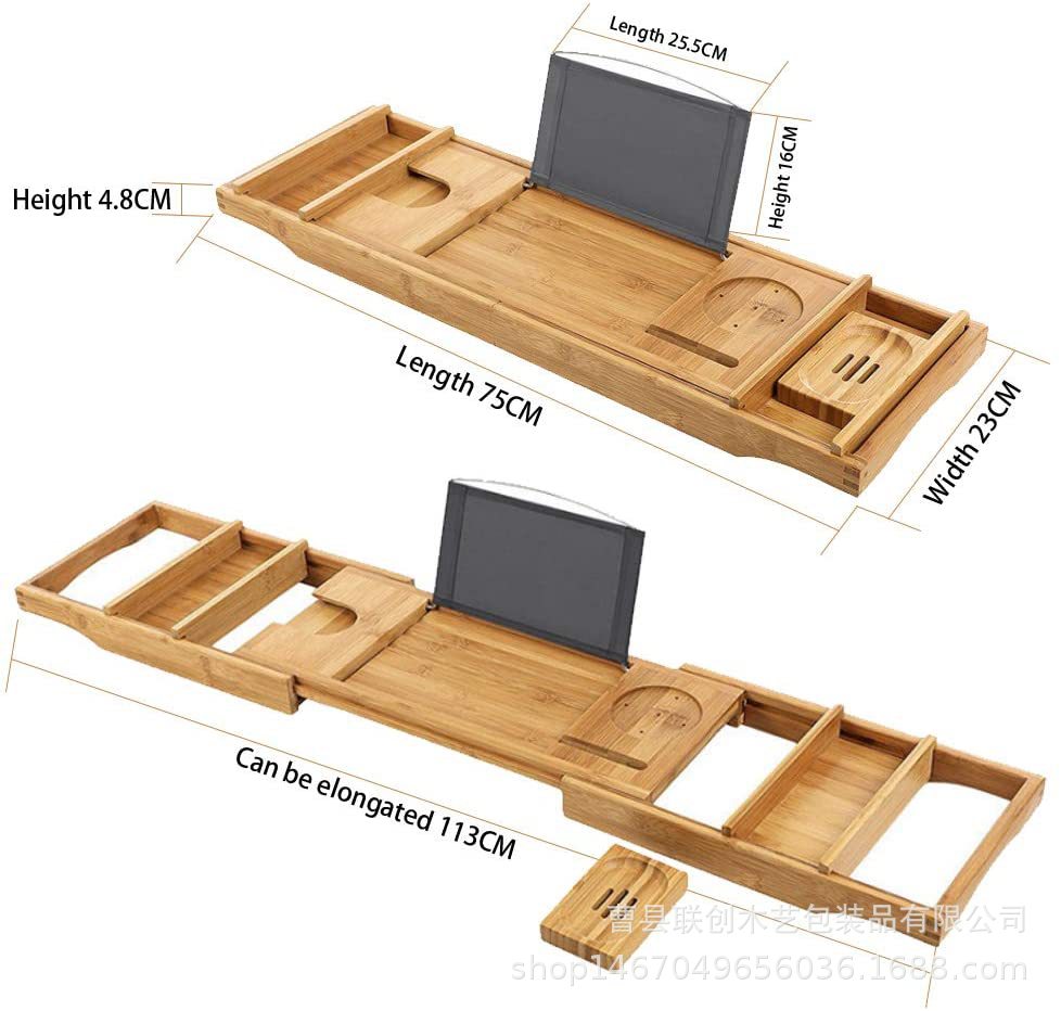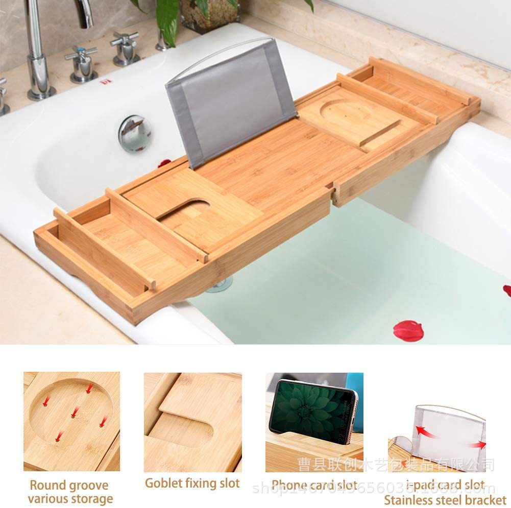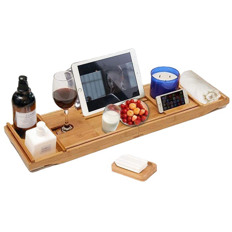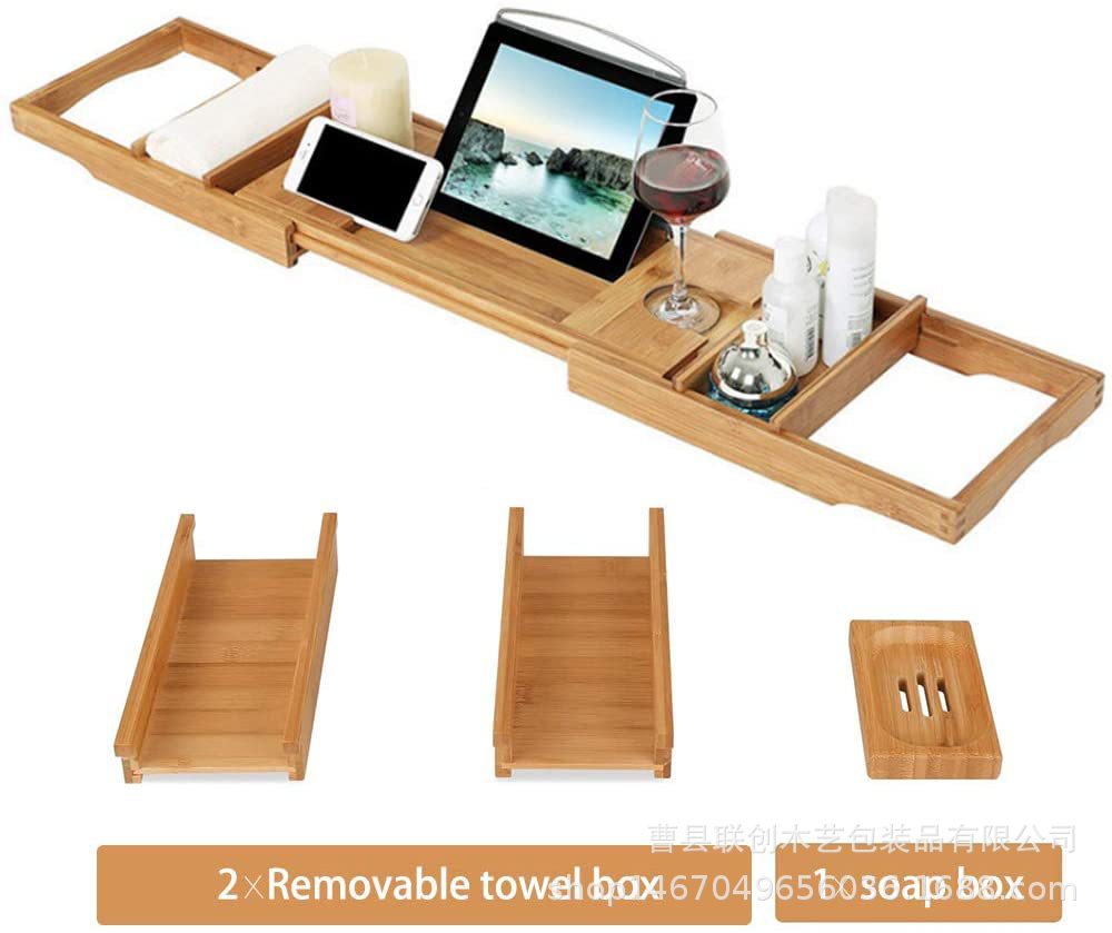 浴室收纳架木质平板手机红酒整理架浴缸悬浮架实木可伸缩置物架