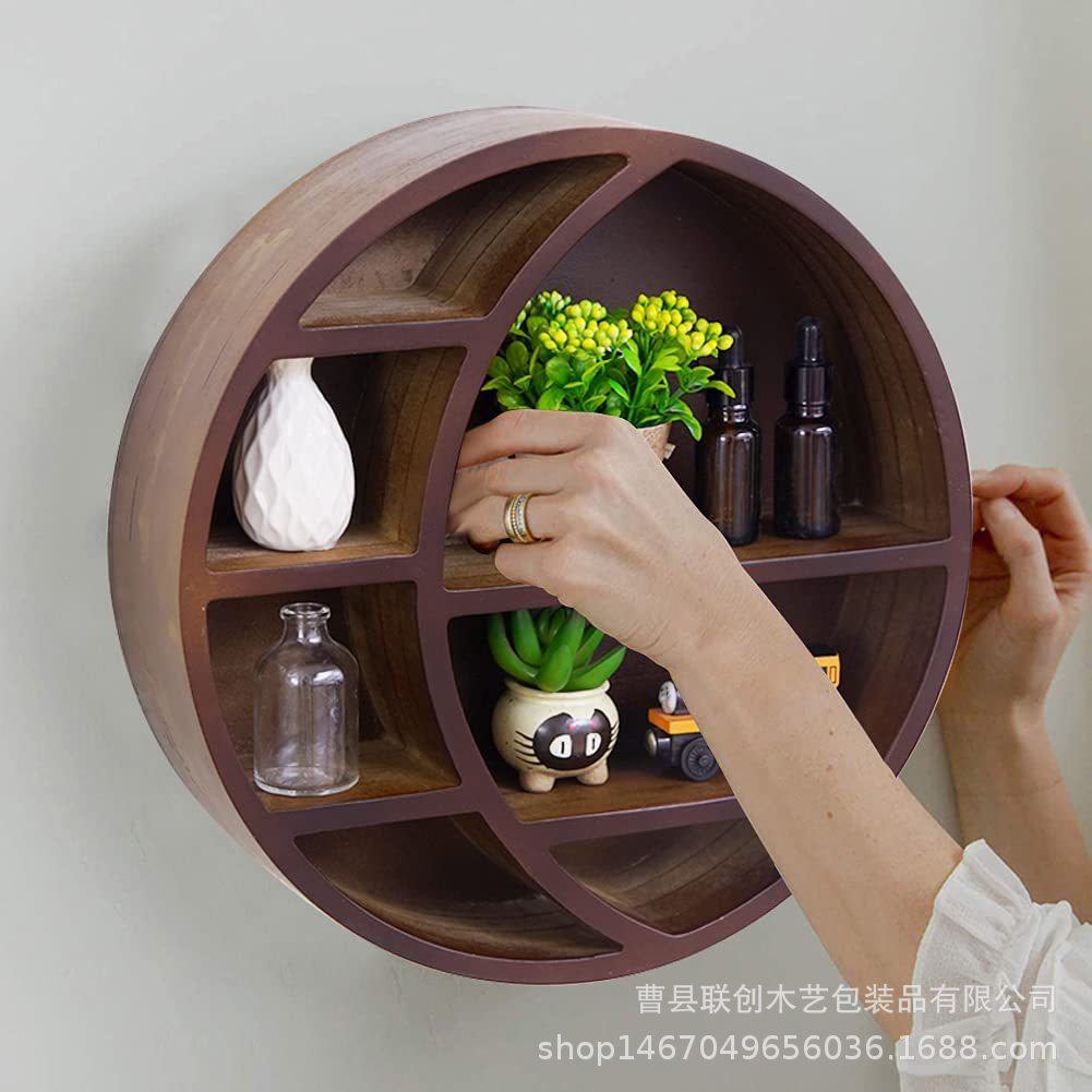 实木墙壁置物架创意壁挂式迷你绿植展示架服装店咖啡厅装饰收纳架