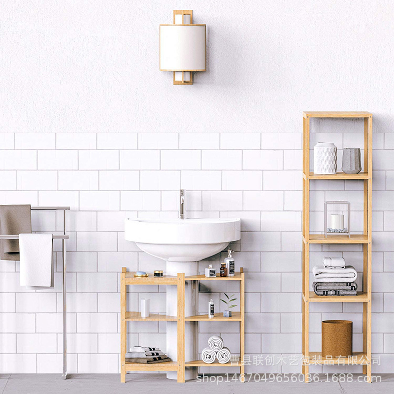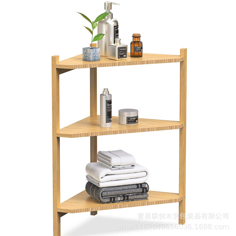 欧式竹木浴室多层置物架卫生间毛巾香薰收纳架竹制转角储物整理架